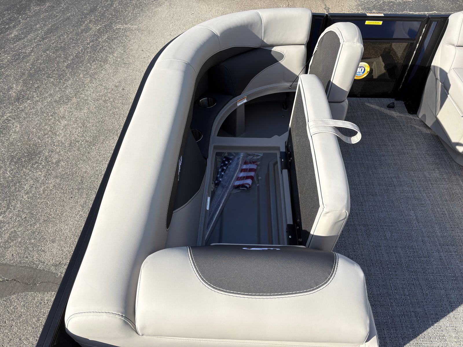 The Barletta Aria A22QC-Platinum is packed with features that set it apart from other pontoon boats for sale. The Railskin Color Aria in Blue Sapphire, complemented by the Railskin Accent Aria in Black Diamond, gives this pontoon a striking and sophisticated appearance. The Blackout Package Aria adds a touch of modern elegance, ensuring your boat turns heads wherever you go. Inside, the Tempest Gray furniture offers plush, comfortable seating for you and your guests, while the Amore Gray flooring provides a stylish and easy-to-clean surface underfoot. The Triple Toon Package Aria enhances the boat’s stability and performance, making it perfect for a variety of water activities. The in-floor midship storage is a practical addition, offering ample space to stow away gear and essentials, keeping the deck clutter-free and organized.