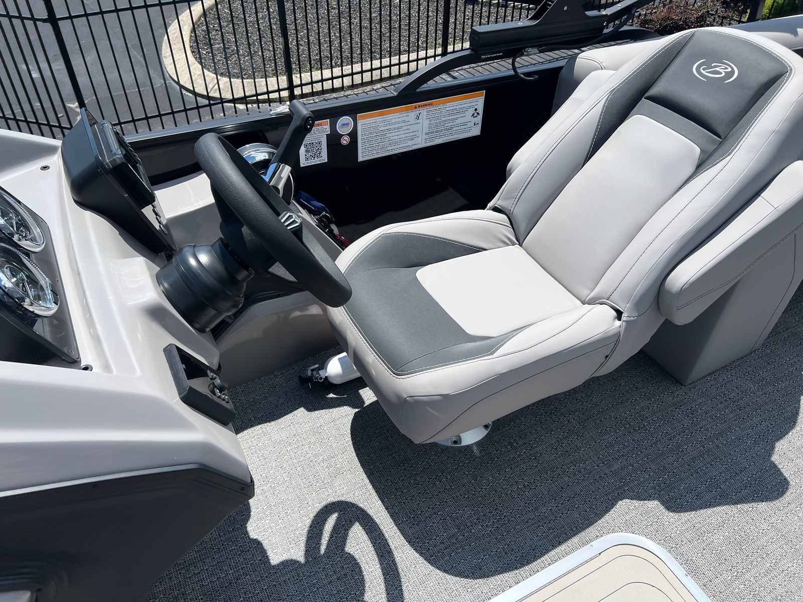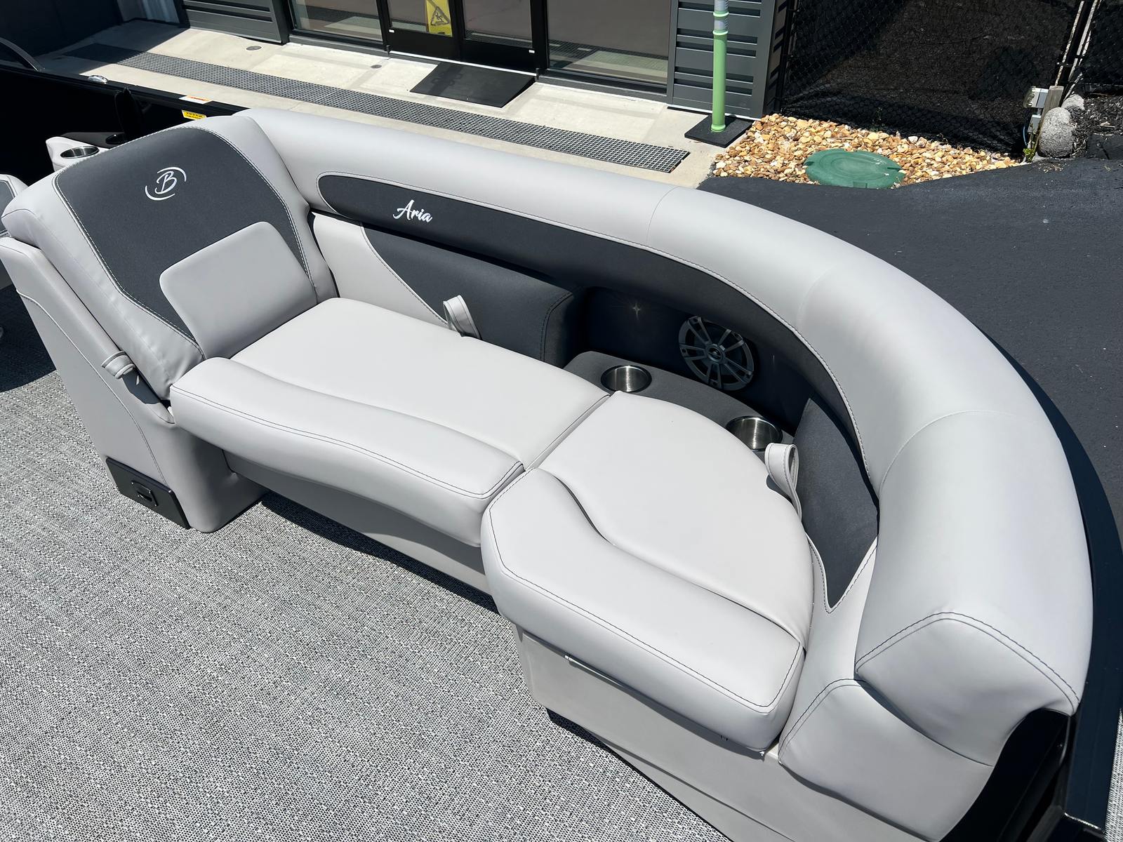 The Barletta Aria A22QC Pontoon is as practical as it is luxurious. The in-floor midship storage provides ample room for life jackets, fishing gear, and other essentials, making it easy to keep your boat organized and ready for any activity. The sturdy construction and Triple Toon Package Aria ensure stability when docking, loading, or unloading, while the efficient Mercury engine helps you make the most of your time on the water.This pontoon boat for sale is perfect for those who value convenience and ease of ownership. The intuitive layout and thoughtful features make it simple to prepare for a day out, whether you’re planning a quick afternoon cruise or a full day of fun. The Eagle 5 GPS streamlines navigation, while the stylish Railskin packages require minimal maintenance to keep your boat looking its best.