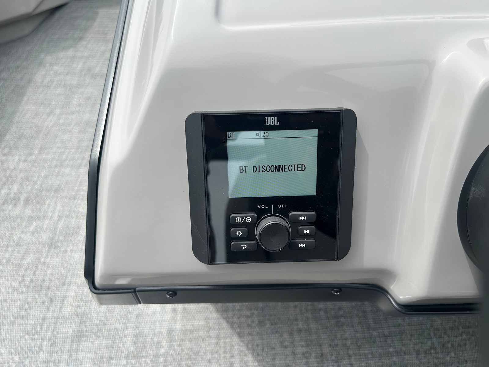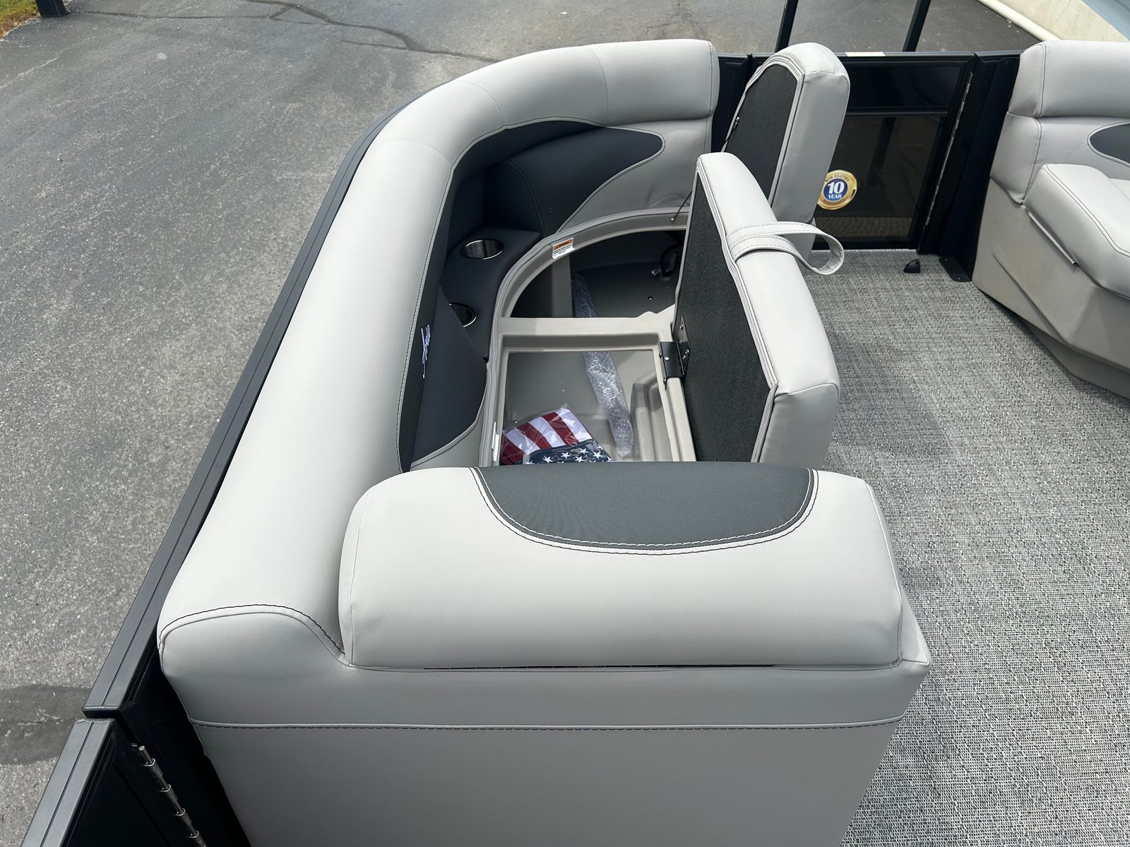 The Barletta Aria A22UC-Platinum is loaded with features designed to elevate your boating experience. The Railskin Color Aria in Gray Moonstone, complemented by the Blackout Package Aria, gives this pontoon a modern, sophisticated look that stands out on the water. The flooring, finished in Amore Gray, not only adds to the boat’s visual appeal but also provides a comfortable, slip-resistant surface for all your activities.Inside, the furniture is upholstered in Tempest Gray, offering plush seating that invites you and your guests to relax in style. The In Floor Midship Storage is a game-changer for keeping your gear organized and out of the way, ensuring a clutter-free deck and more space for fun. The Simrad 7" G07 XSE provides advanced navigation and system monitoring, putting essential information at your fingertips and enhancing your confidence on every journey.