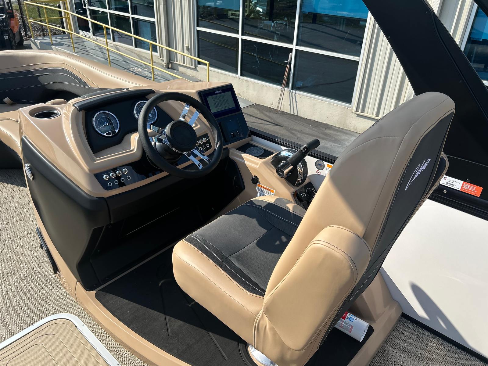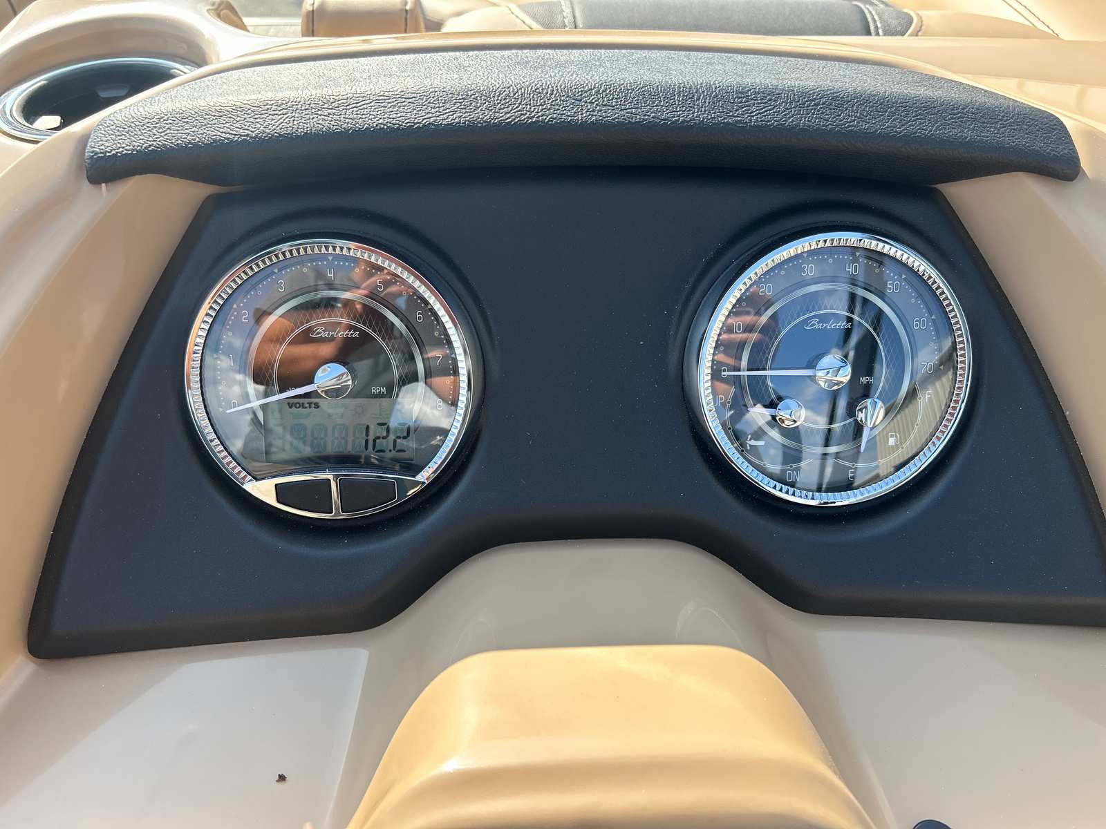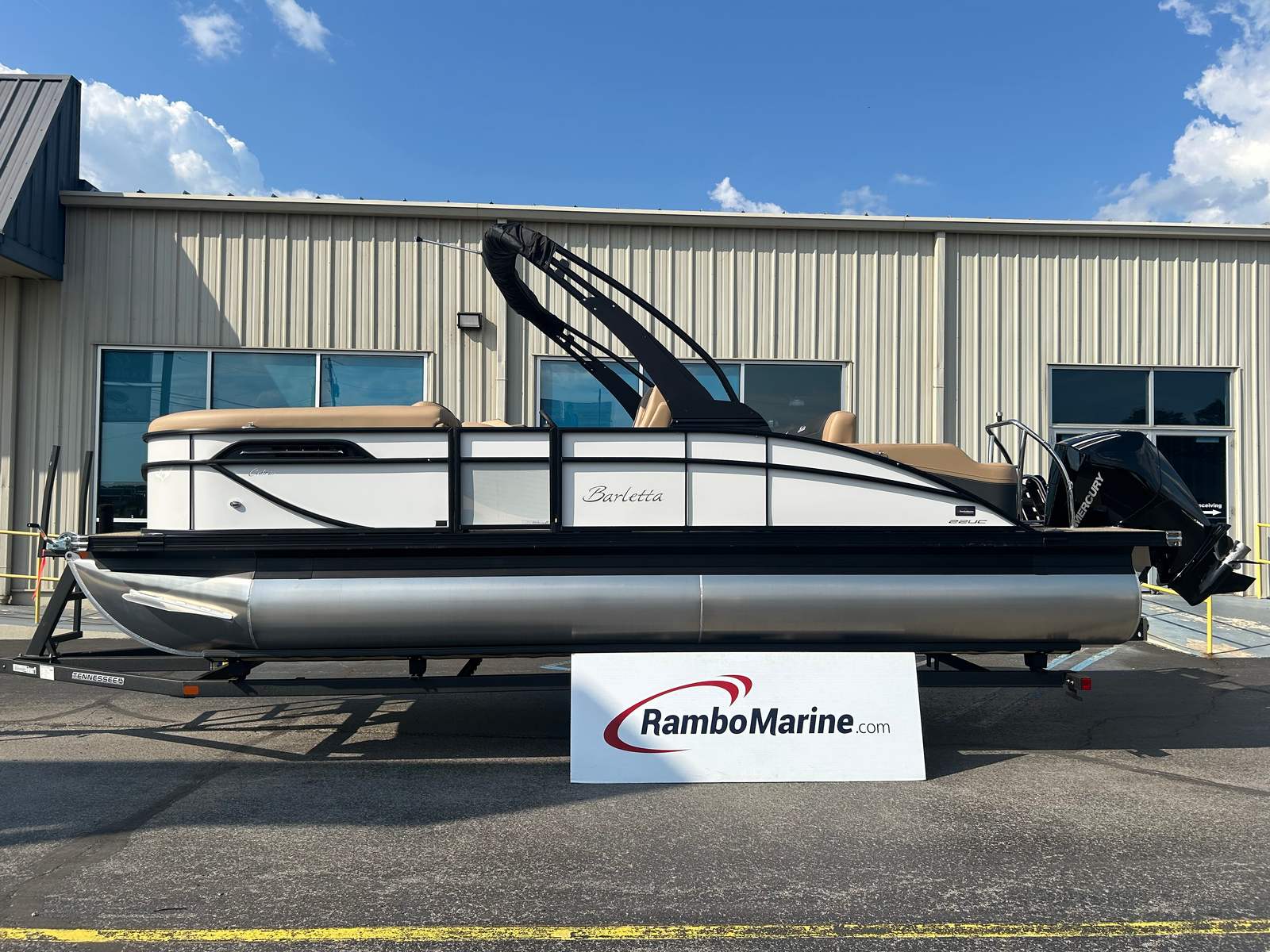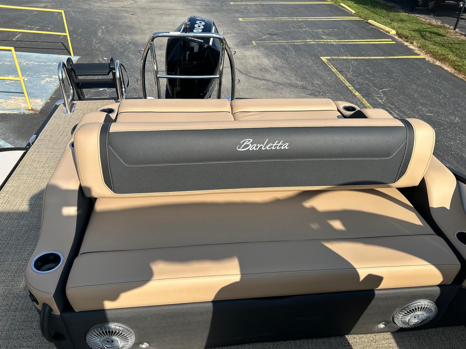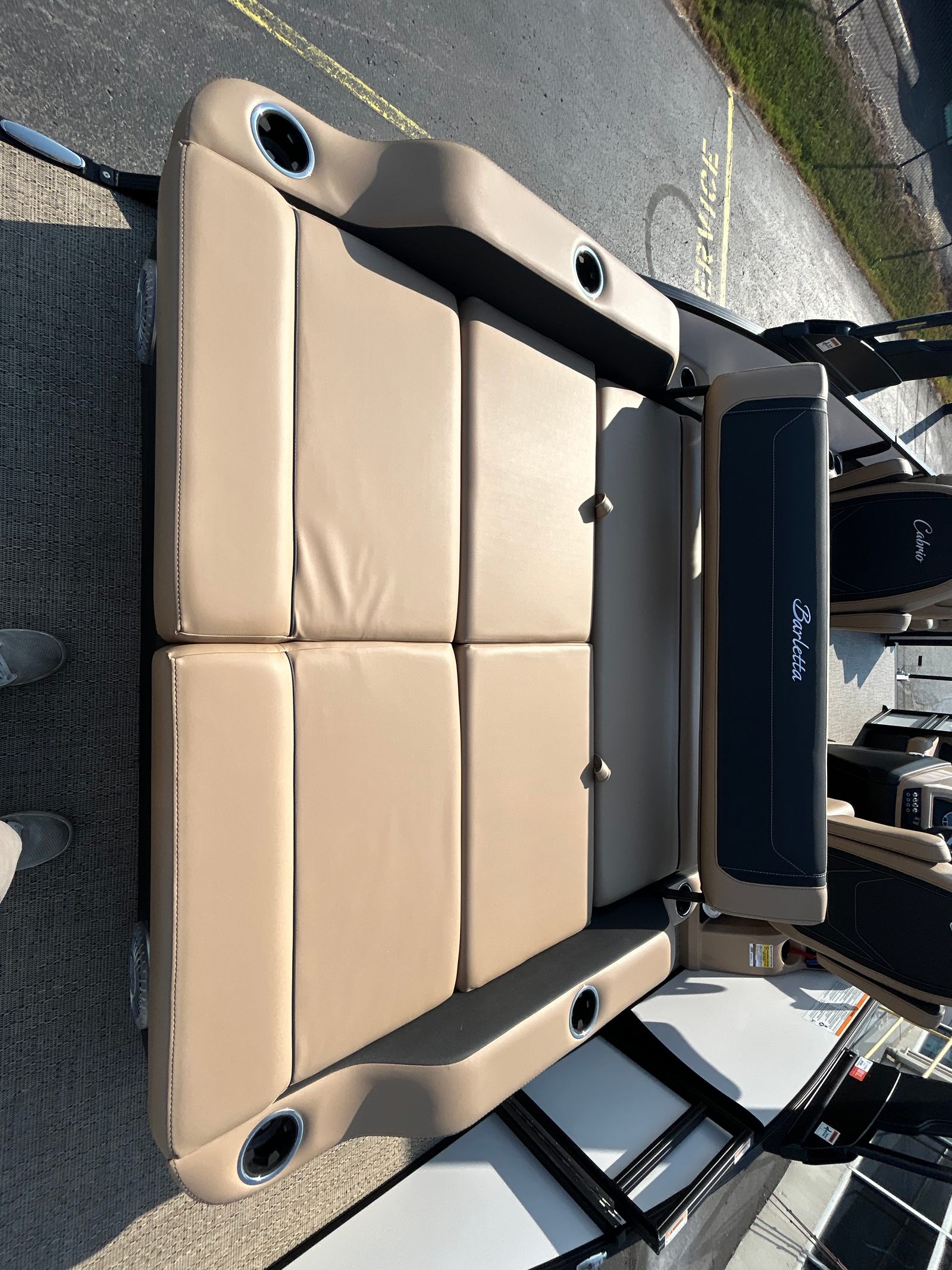 The 2026 Barletta Cabrio C22UC is loaded with premium features that elevate your boating experience. The Blackout Package Cabrio railskin adds a bold, modern touch to the exterior, while the Amore Tan flooring provides a warm and inviting atmosphere underfoot. The Sport Bimini, installed in place of the standard bimini, offers superior shade and protection, allowing you to enjoy long days on the water in comfort.For those who appreciate ambiance, the Interior RGB Lighting Package Cabrio lets you customize the mood with vibrant, adjustable lighting, while the exterior white underdeck and underwater lighting create a striking presence after dark. The onboard battery charger with two batteries ensures you have reliable power for all your adventures, while the triple toon package with midship storage maximizes stability and provides ample space for gear and essentials.A stainless steel flag pole with an American flag adds a patriotic flair, making this pontoon boat a true standout wherever you go. Every detail, from the rigged engine with stainless steel prop to the thoughtfully designed storage solutions, reflects Barletta’s dedication to quality and innovation.
