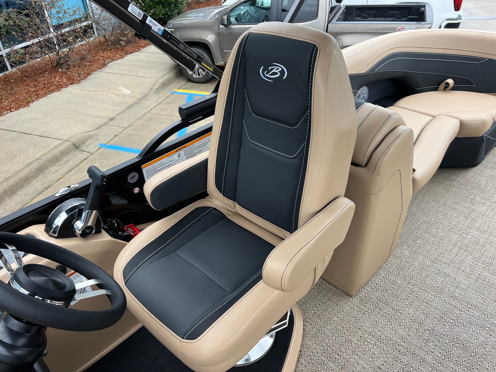 The Barletta Cabrio C24QC is loaded with features that set it apart from other pontoon boats for sale. The Black Diamond Railskin color, paired with the Blackout Package, gives this pontoon a bold, modern look that is sure to turn heads at the marina. Inside, the Carmella Tan with Onyx furniture offers plush seating and a sophisticated aesthetic, while the Amore Tan flooring provides a comfortable, slip-resistant surface underfoot.The triple toon package with midship storage not only improves performance but also adds valuable storage space for gear, water toys, and personal items. The onboard battery charger with two batteries ensures you have reliable power for all your electronics and accessories, while the metal jacket protectant helps keep your pontoon looking pristine season after season. A stainless steel flag pole with an American flag adds a patriotic touch, perfect for holiday weekends and special occasions.