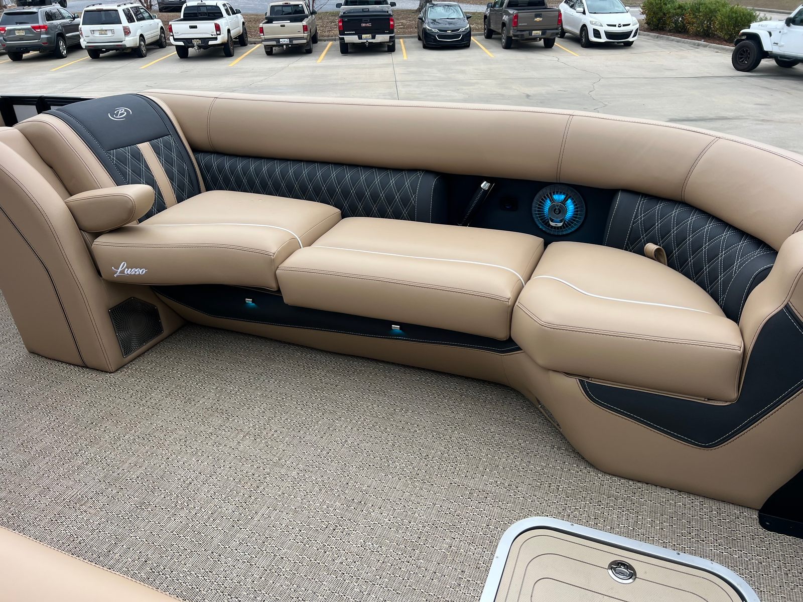 The versatility of the Barletta Lusso L25M makes it the perfect choice for a wide range of activities. Imagine gathering your family for a weekend adventure, with plenty of space for everyone to relax and play. Host unforgettable parties with friends, enjoying the comfort and style of the Carmella Tan with Onyx seating and the protection of the Sport Bimini. For those who love fishing, the spacious deck and stable platform provide an excellent base for casting lines and reeling in the catch of the day. If luxury getaways are more your style, the Lusso L25M offers the perfect setting for peaceful cruises, romantic evenings, or simply unwinding in the sun. No matter how you choose to enjoy your time on the water, this pontoon boat is designed to make every moment memorable.