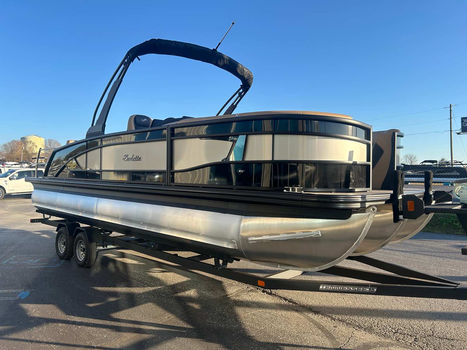 The 2026 Barletta Lusso L25UE is more than just a pontoon boat for sale; it is an invitation to elevate your boating experience. With its striking Black Diamond and Champagne color scheme, luxurious Carmella Tan with Onyx furniture, and advanced Mercury 300L Verado V8 engine, this Barletta boat for sale offers the perfect blend of style, performance, and comfort. The Blackout Package Lusso, Sport Bimini, and onboard battery charger are just a few of the features that set this model apart. If you are ready to enjoy the ultimate in leisure, entertainment, and adventure on the water, the Barletta Lusso L25UE is the boat you have been waiting for. Contact your local dealer today to learn more and take the first step toward making unforgettable memories on the water.