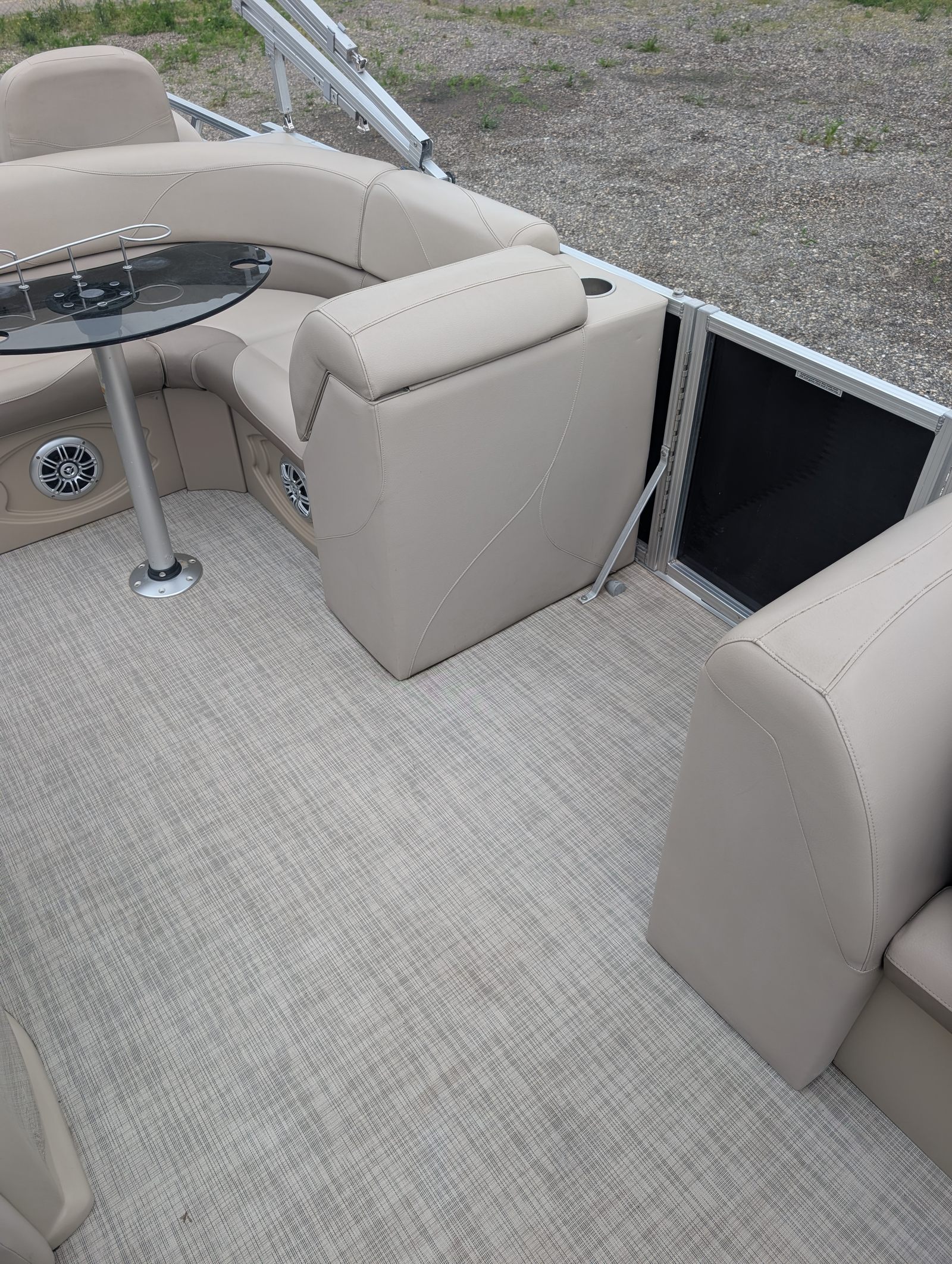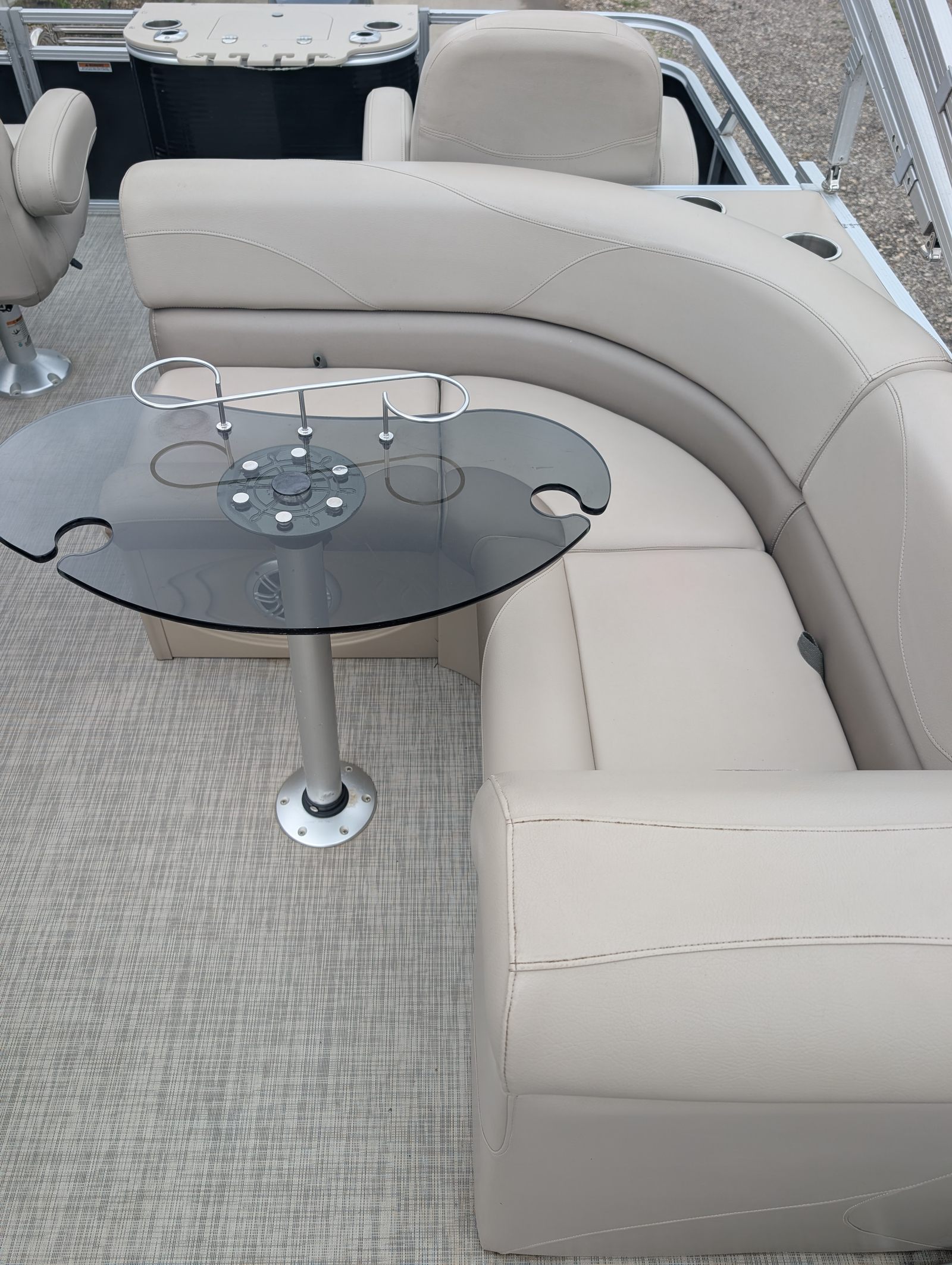 Powering this Avalon LSZ RF-22T is a single engine with 90 horsepower, delivering a smooth and efficient ride across lakes and rivers. The 90 HP engine strikes a perfect balance between fuel efficiency and performance, allowing you to cruise comfortably, tow water toys, or reach your favorite fishing spots with ease. The responsive handling and steady acceleration make this pontoon boat a joy to operate, whether you are an experienced captain or new to boating. The inclusion of a hot foot adds an extra layer of control and convenience, enhancing your overall boating experience.