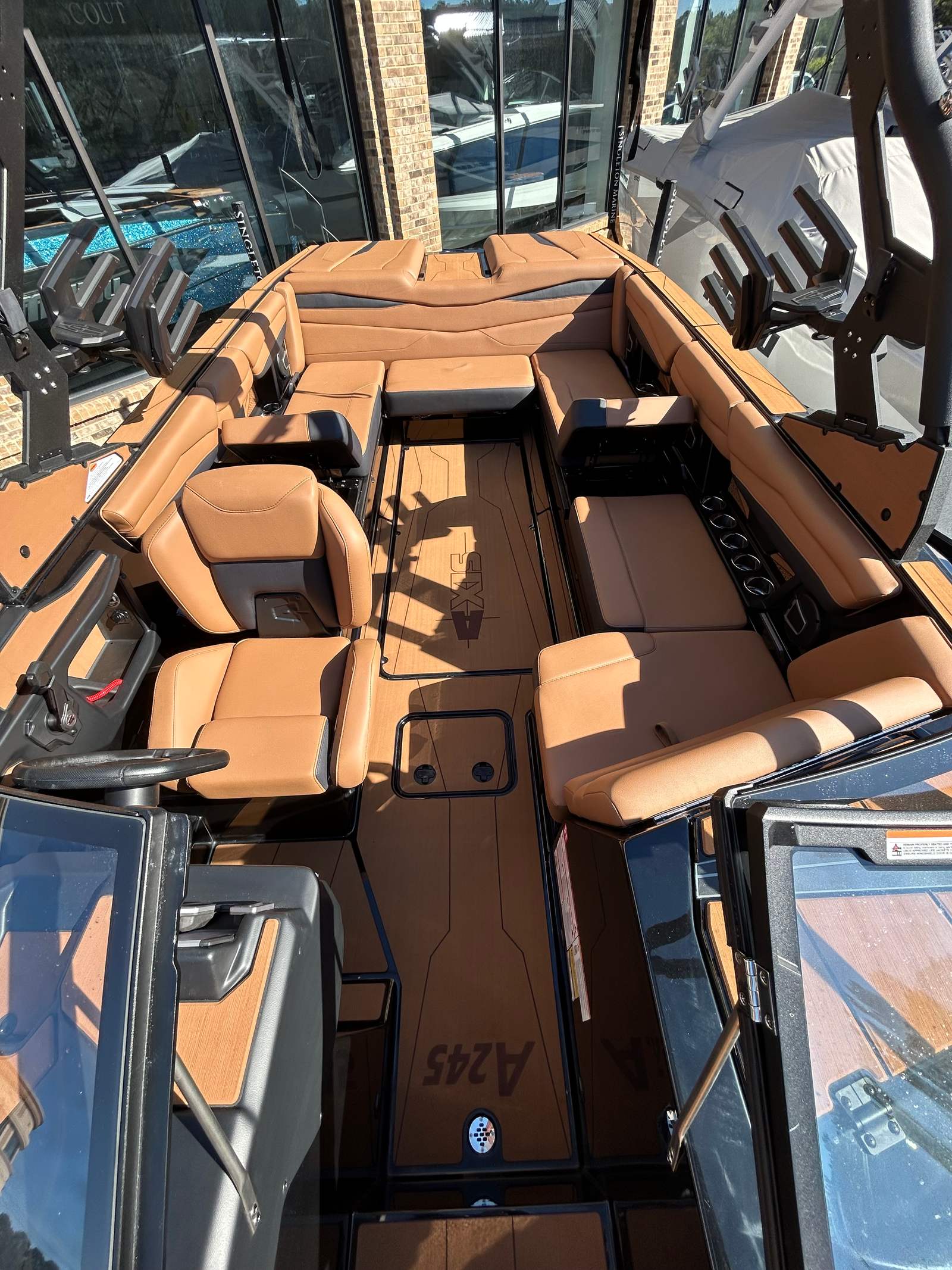 The Axis A245 is packed with special features that set it apart from other Ski & Wakeboard boats for sale. Storage Lights illuminate your gear and compartments, making it easy to organize equipment even after sunset. The Exhaust - Surf Pipe enhances the wake experience by optimizing exhaust flow, contributing to cleaner, quieter rides. The Edition-Core package brings a refined touch to the boat’s aesthetics and functionality, while the Ebony-AW26 Tower provides a sturdy platform for wakeboarding and waterskiing activities.The Composite Flooring System offers durability and easy maintenance, ensuring your boat stays looking fresh season after season. A Tandem Axle Trailer is included for convenient transport and storage, making it simple to take your boat wherever adventure calls. Standard Seating provides comfort for all passengers, while the Deck Trac - Nonskid (Complete Deck Kit) ensures safety and stability throughout the vessel. The Battery Charger keeps your systems powered up, and Fire Suppression adds an extra layer of safety for peace of mind.