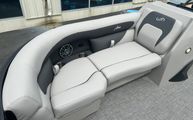 Features and SpecificationsThe Barletta Aria A22UC-Platinum is loaded with premium features that set it apart from other pontoon boats for sale. The striking Railskin Color Aria in Black Diamond, complemented by the Railskin Accent Aria in Gray Moonstone, gives this pontoon a sophisticated and modern look. The Blackout Package Aria adds an extra touch of elegance, making a bold statement wherever you go. Inside, the Tempest Gray furniture offers plush seating and a contemporary aesthetic, while the Amore Gray flooring is both stylish and easy to maintain. The onboard battery charger for the single battery ensures you are always ready for your next adventure, keeping your electronics powered and your outings uninterrupted.