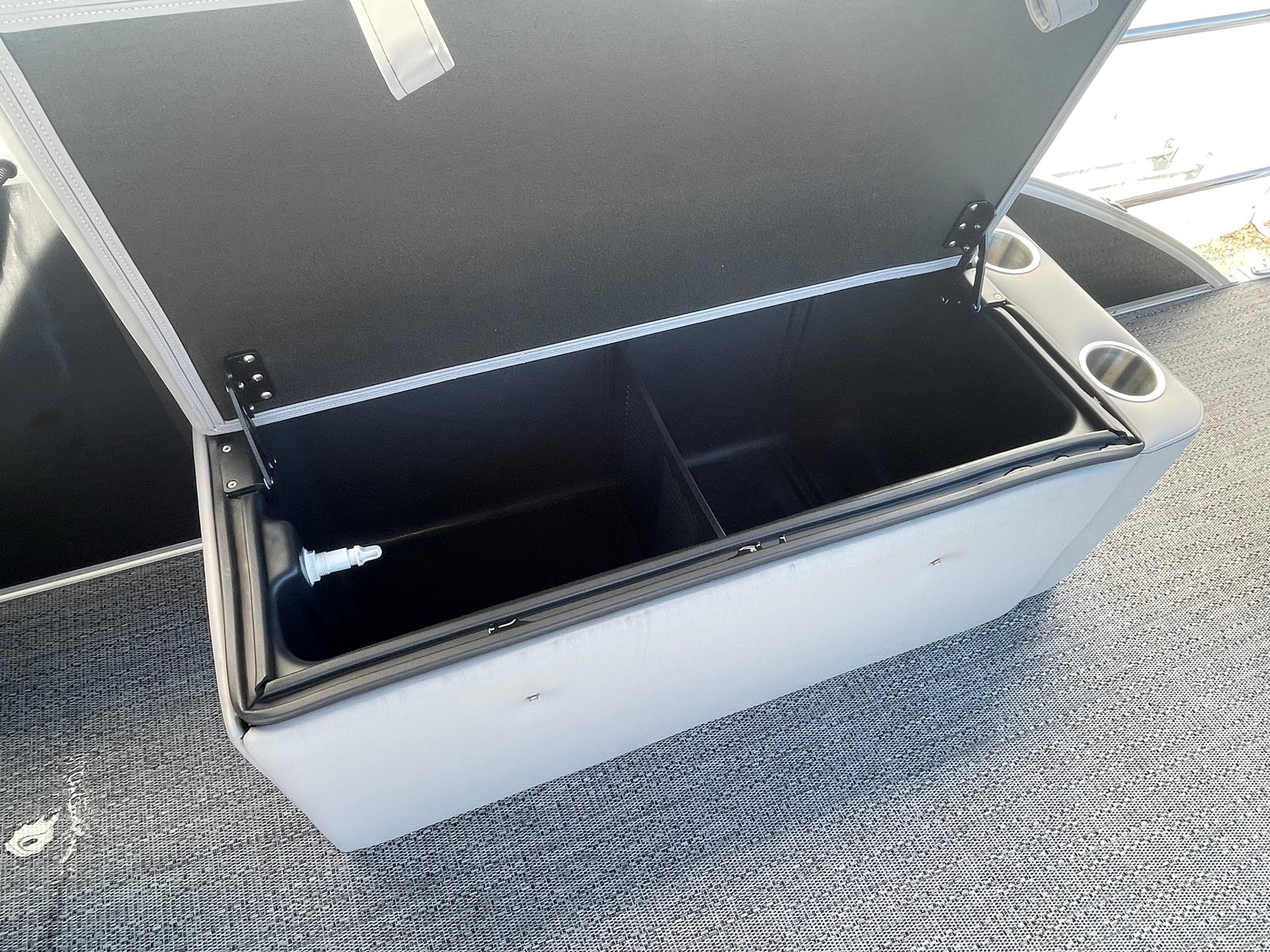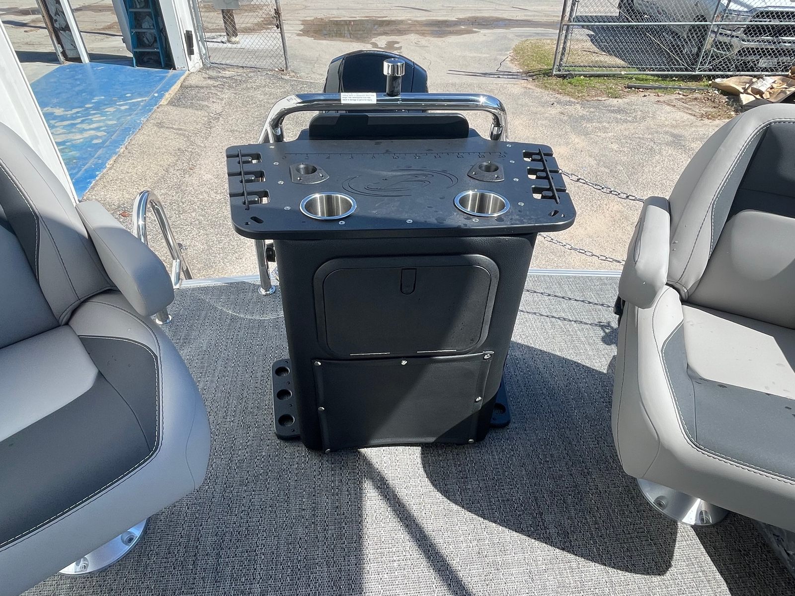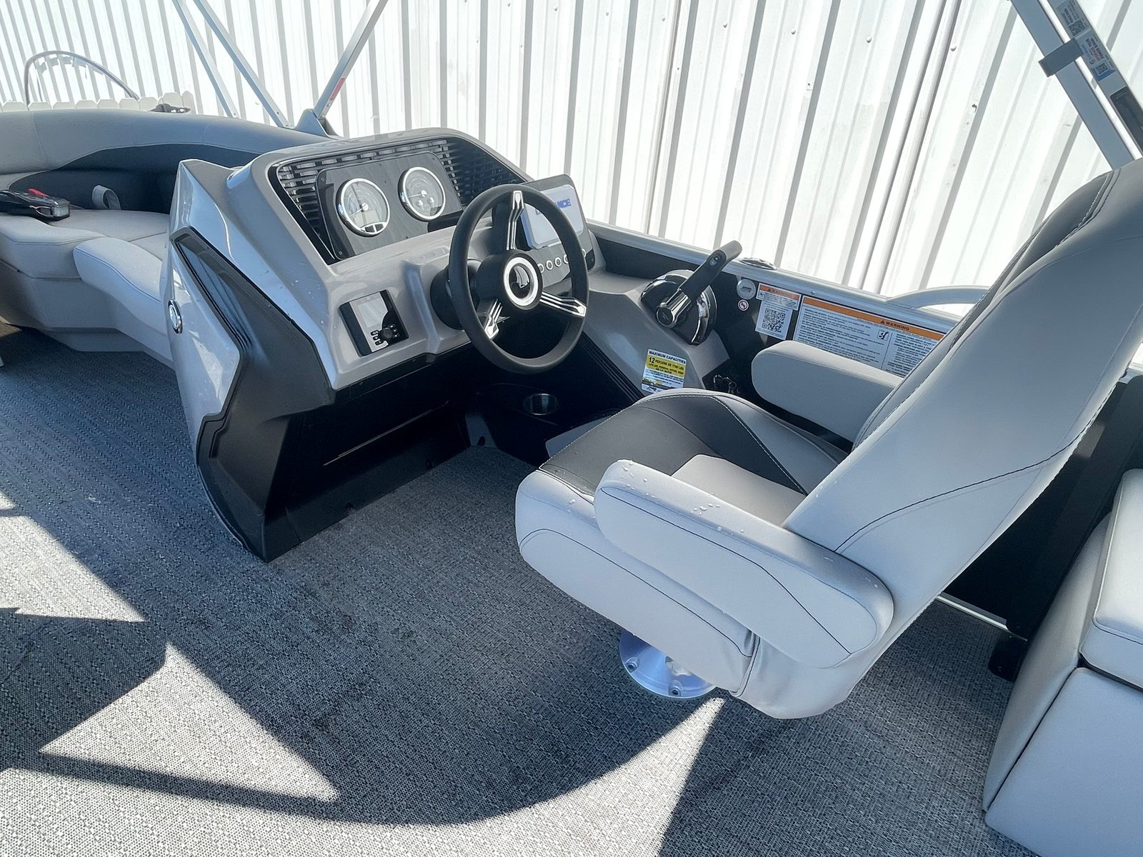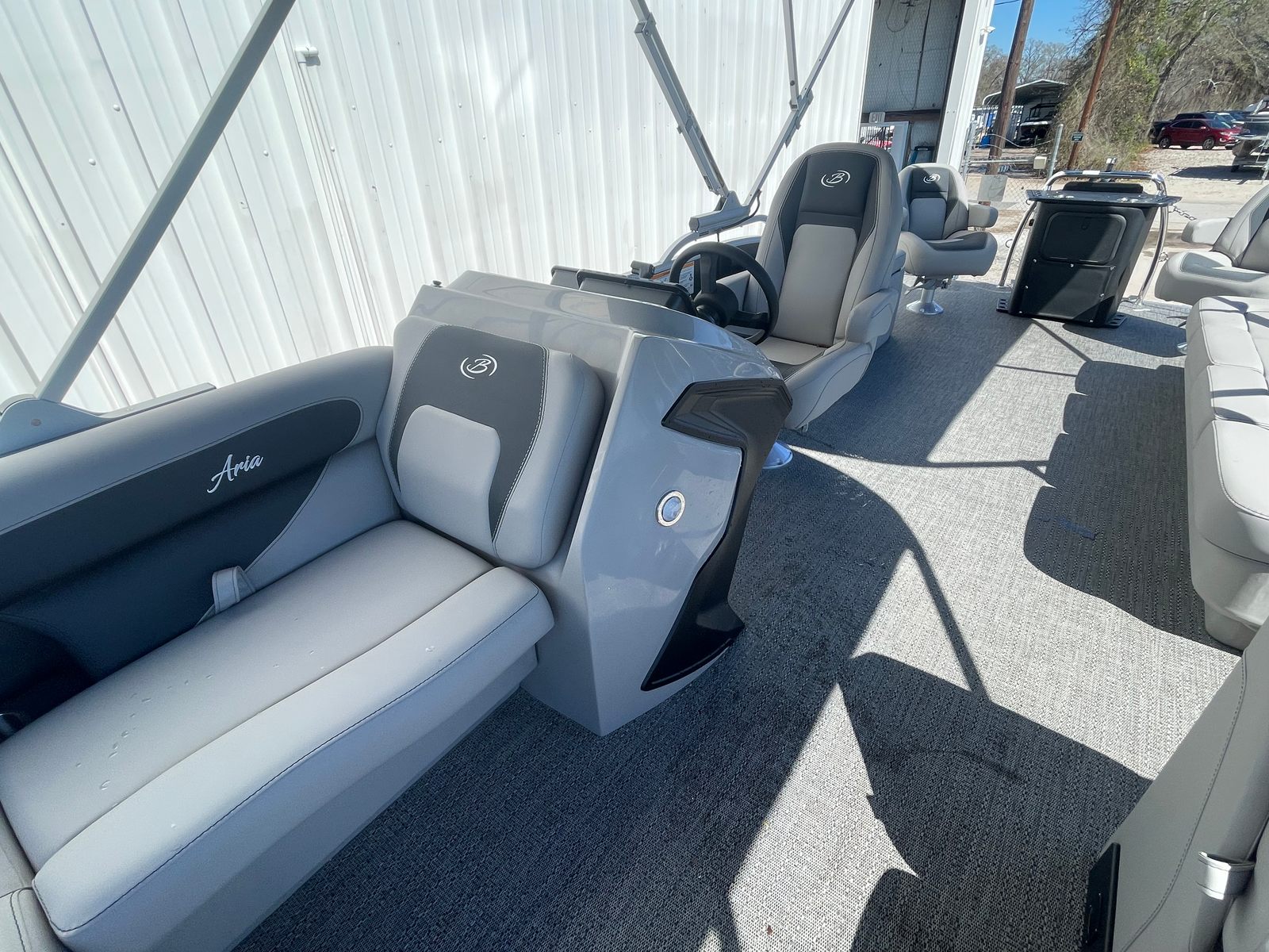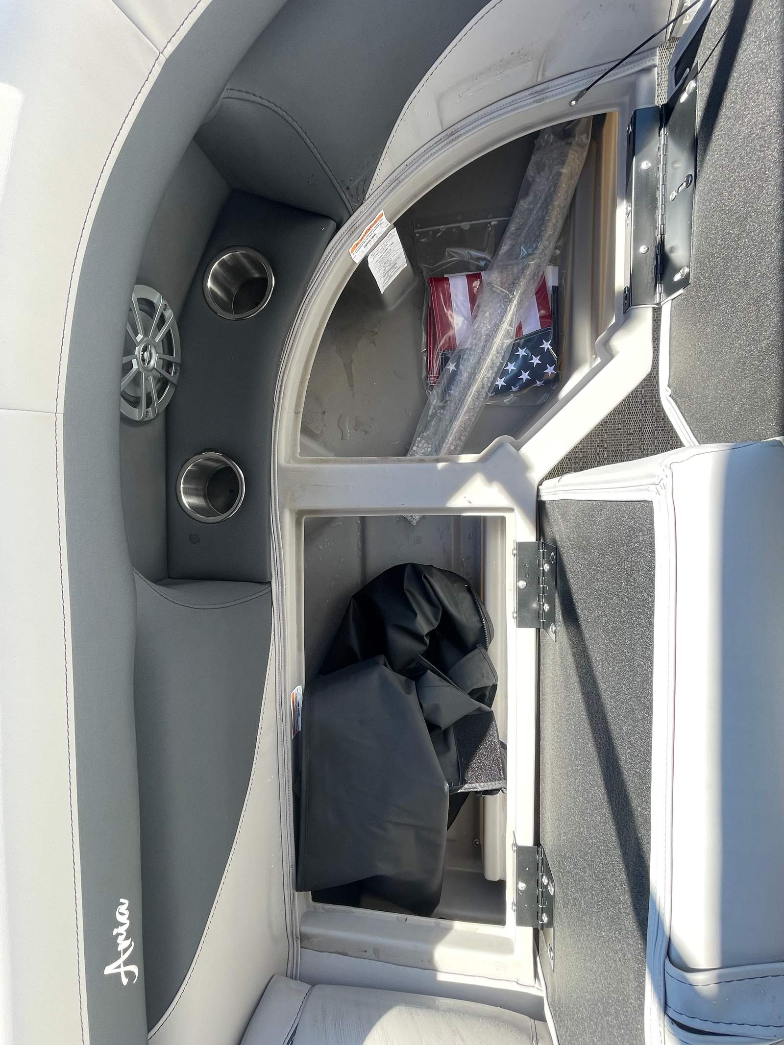 Step aboard the Aria A22CC and discover a world of comfort and convenience. The Tempest Gray furniture offers plush, supportive seating that invites you to relax and unwind, while the Amore Gray flooring provides a stylish, slip-resistant surface that is both practical and visually appealing. The Triple Toon Package Aria enhances stability and buoyancy, allowing for a smoother ride even when the water gets choppy.Enjoy the shade and protection of the double bimini, perfect for those sunny afternoons or when you want a break from the heat. The stainless steel flag pole with an American flag adds a patriotic touch and a sense of pride to your boating adventures. Navigating your favorite waterways is a breeze with the Eagle 5 GPS, providing accurate and reliable guidance wherever your journey takes you.