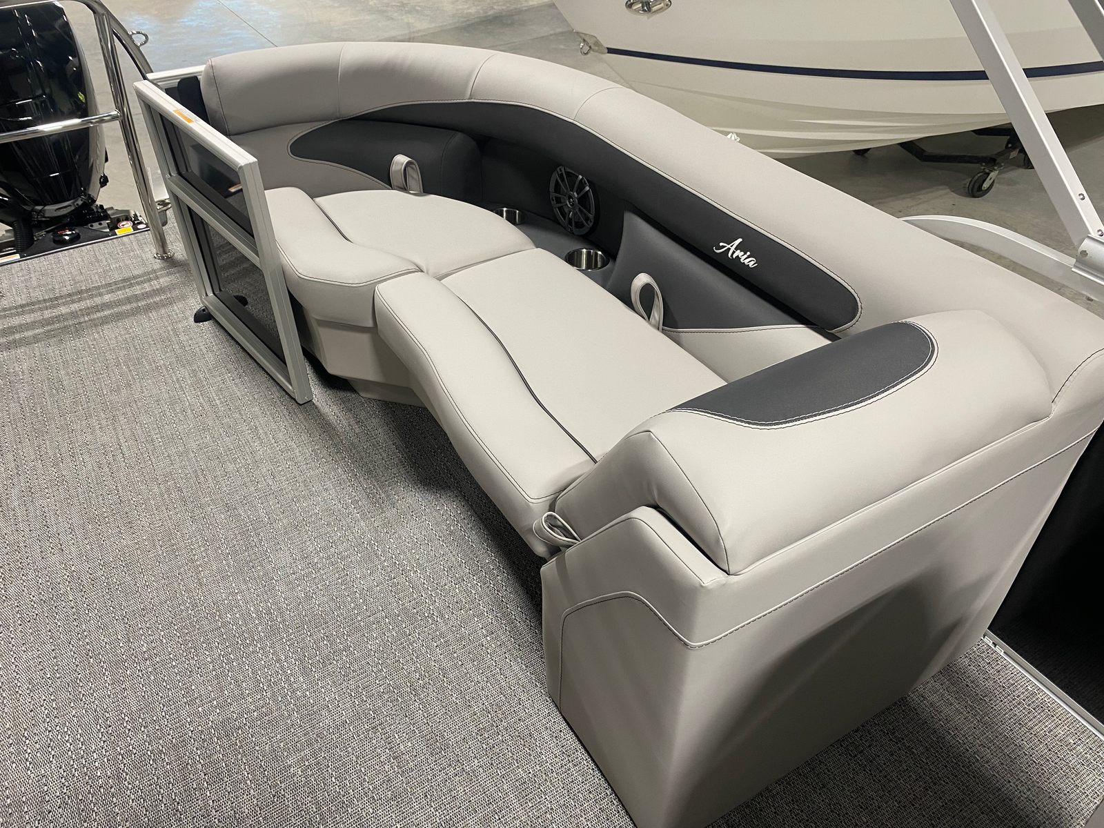 The 2026 Barletta Aria A22QC-Platinum is a brand-new pontoon boat measuring just over 21 feet in length. This versatile vessel is engineered to provide ample space for friends and family, making it ideal for social gatherings, leisurely cruises, or exciting water adventures. The sleek Railskin Color Aria in Black Diamond gives the exterior a sophisticated, modern look, while the Tempest Gray furniture and Amore Gray flooring create an inviting and comfortable atmosphere onboard. With its contemporary design and attention to detail, this Barletta pontoon boat is sure to turn heads wherever you go.