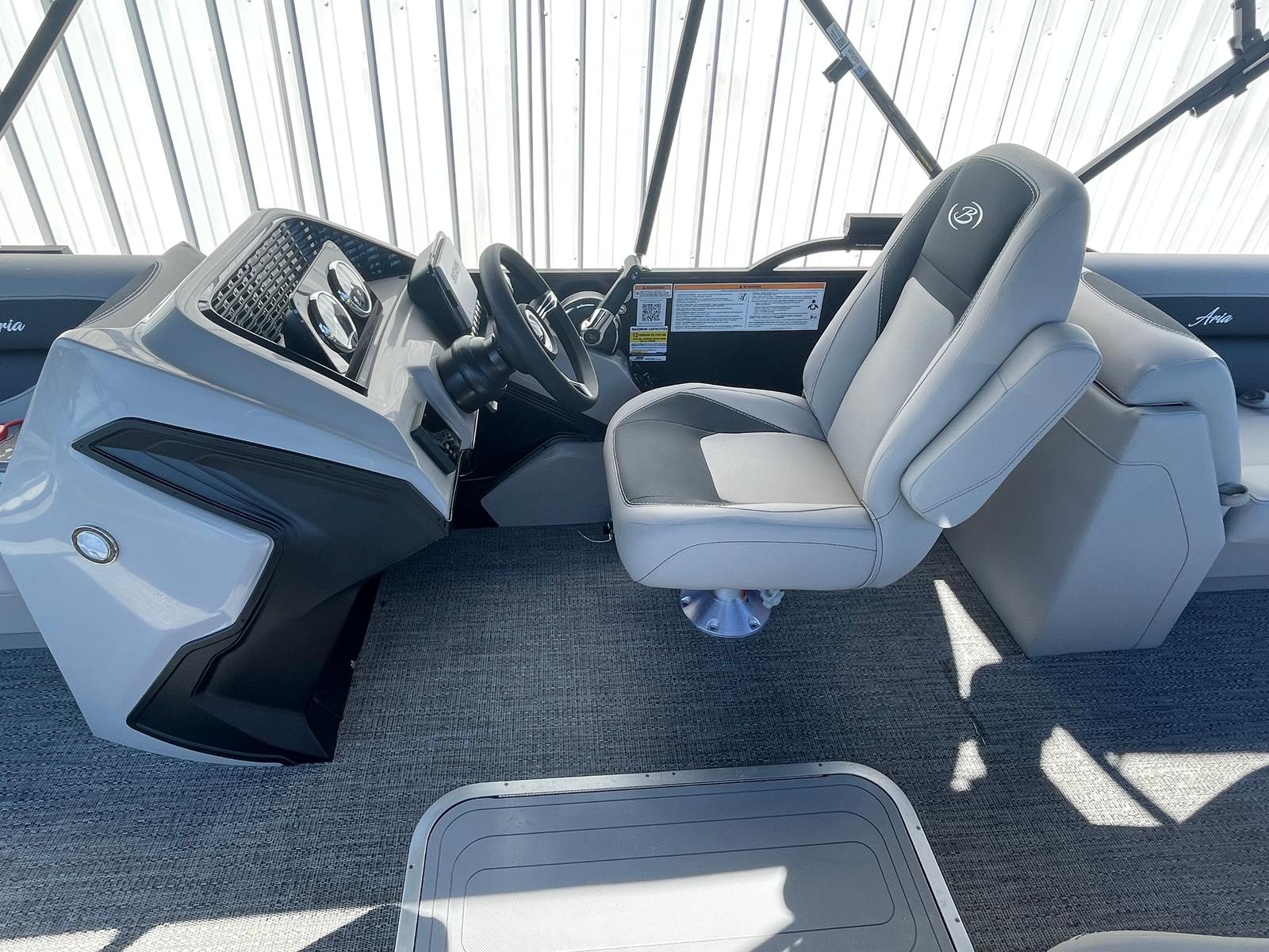 The 2026 Barletta Aria A22QC-Platinum is meticulously crafted to offer a premium boating experience. Its spacious 21-foot deck is thoughtfully designed to maximize comfort and social interaction, providing ample room for friends and family to relax and enjoy the ride. The plush seating arrangements invite you to unwind, while the high-quality construction ensures durability and longevity for years of fun on the water.This pontoon boat’s layout is perfect for entertaining, with plenty of open space for mingling, sunbathing, or enjoying a picnic on the water. The sleek, modern lines of the Aria A22QC-Platinum are complemented by its platinum finish, giving it a sophisticated look that is sure to turn heads at the marina. Every detail, from the sturdy rails to the ergonomic helm, reflects Barletta’s commitment to quality and innovation.