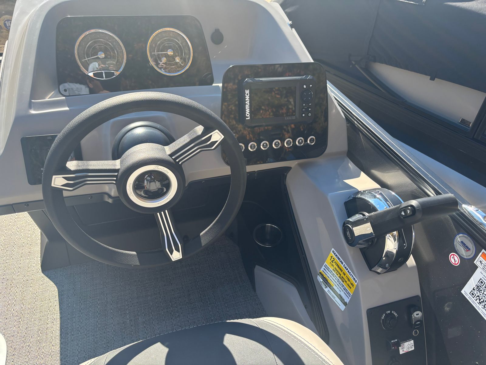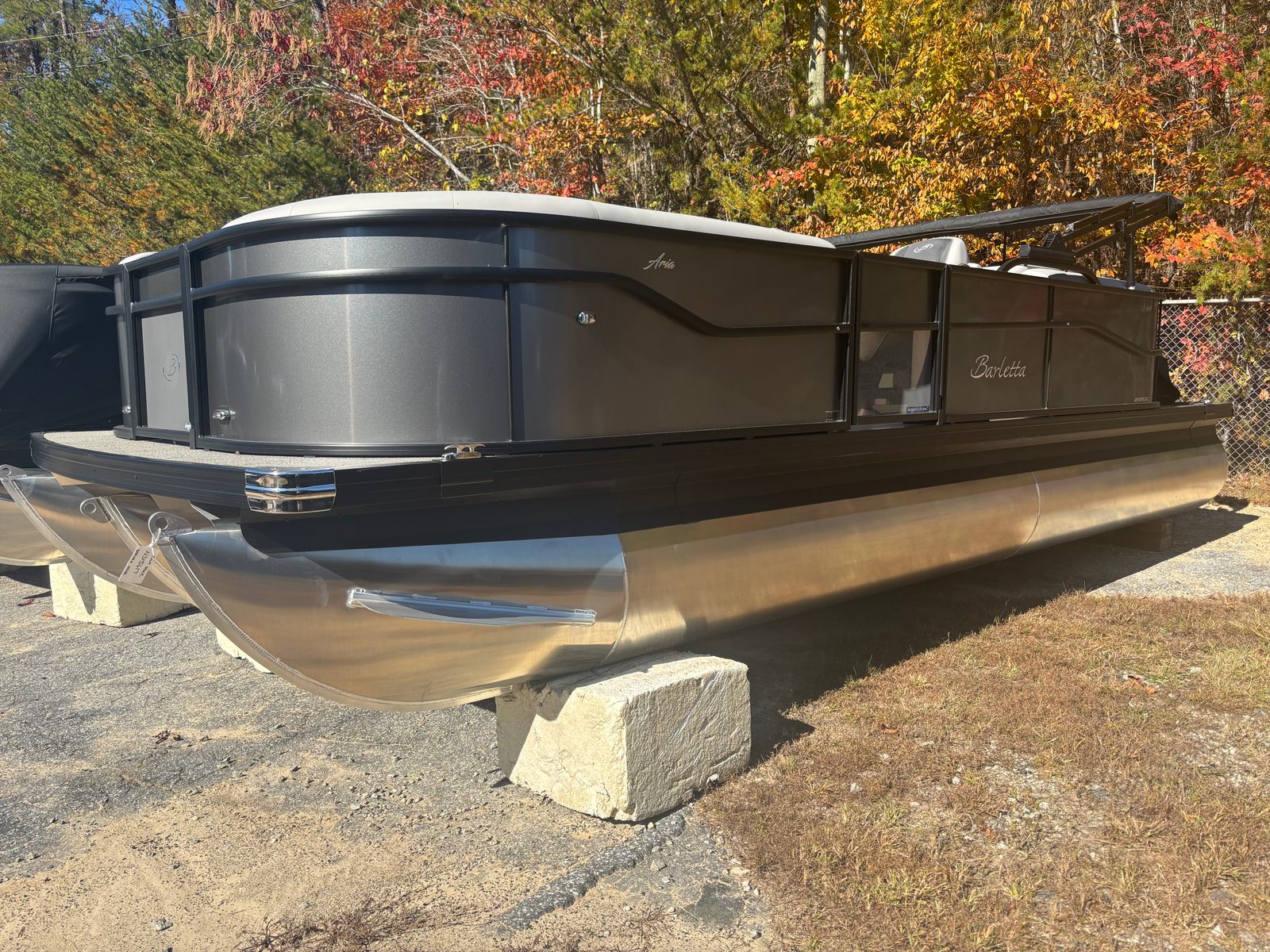 The 2026 Barletta Aria A22QC is a stunning pontoon boat that measures just over 21 feet in length, making it the perfect size for a variety of on-water activities. Its sleek profile and modern design are complemented by the Gray Moonstone Railskin color and the Blackout Package Aria, giving this pontoon a sophisticated and contemporary look that is sure to turn heads at any marina or lake. As a new model, this Barletta boat for sale offers the latest in design innovation and quality craftsmanship, ensuring you enjoy years of reliable performance and enjoyment.