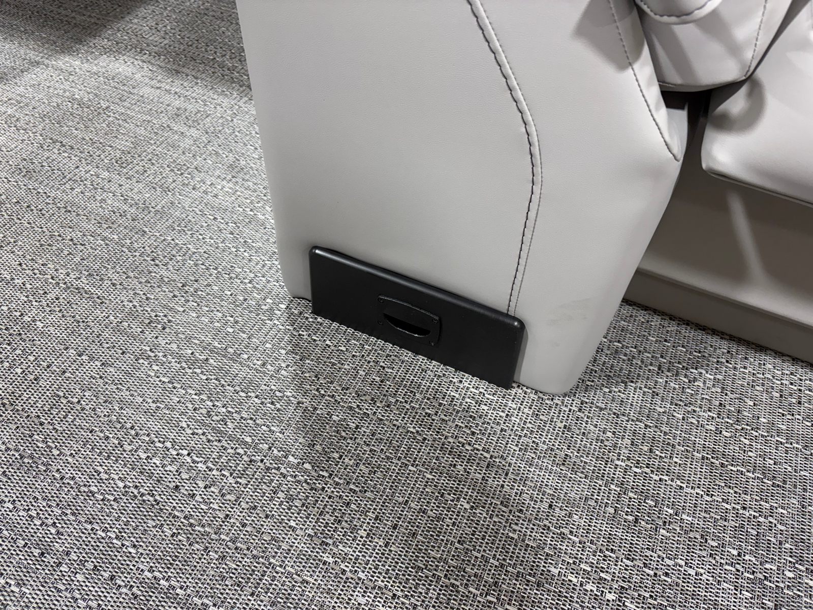 The Barletta Aria A22UC-Platinum is packed with special features that set it apart from other pontoon boats for sale. The Railskin Color Aria in Champagne and the Blackout Package Aria create a striking exterior, complemented by the stainless steel flag pole with an American flag for a touch of patriotic flair. Inside, the Tempest Gray furniture and Amore Gray flooring provide both comfort and style, while the triple toon package enhances stability and ride quality. The in-floor midship storage (available with the triple toon package) offers convenient space for stowing gear, keeping the deck clutter-free and organized. The rigging includes a stainless steel prop for superior performance and longevity, ensuring that every outing is smooth and enjoyable.
