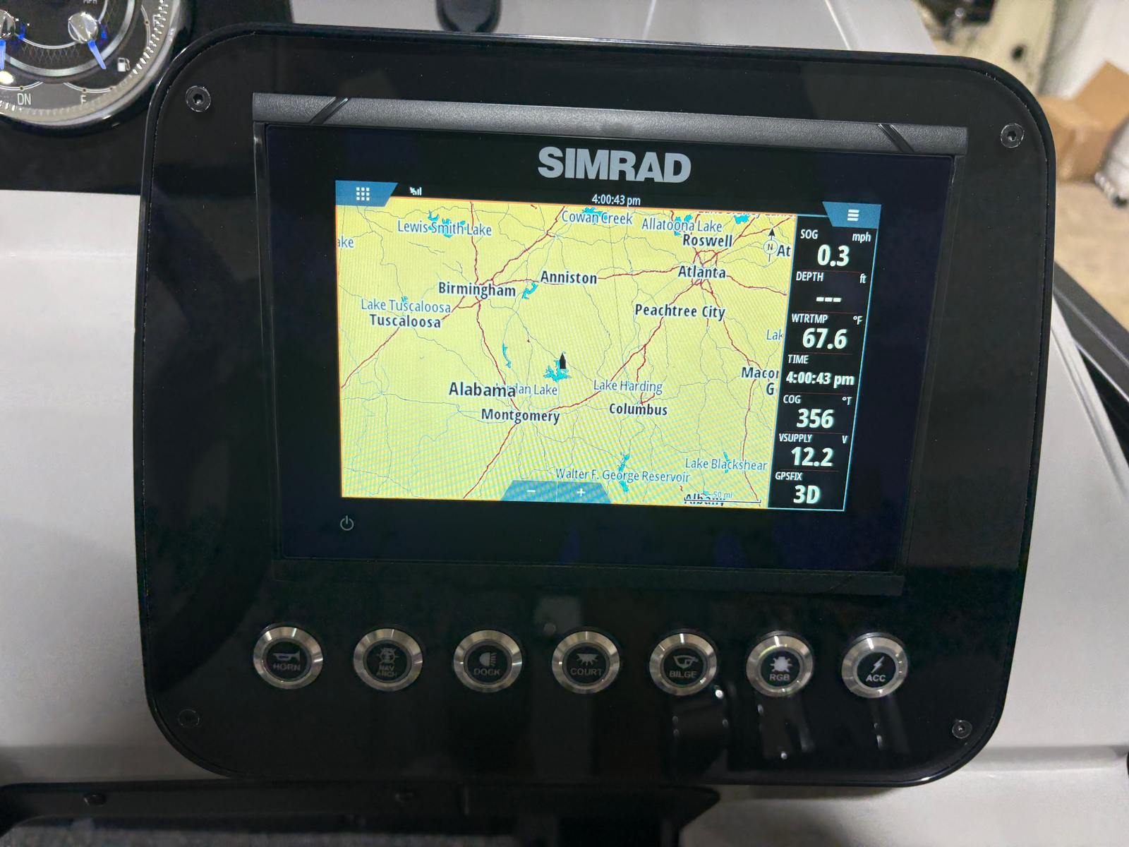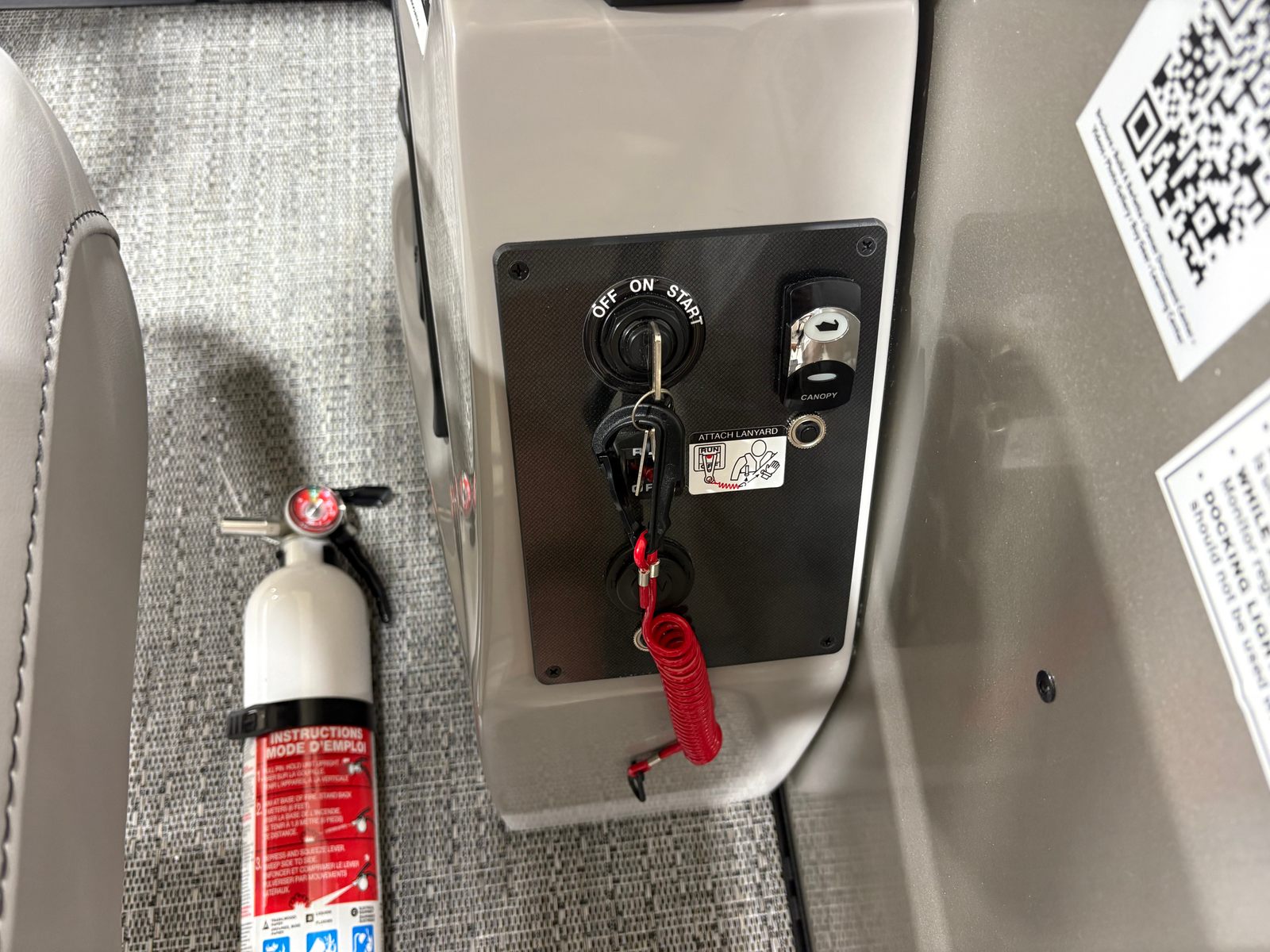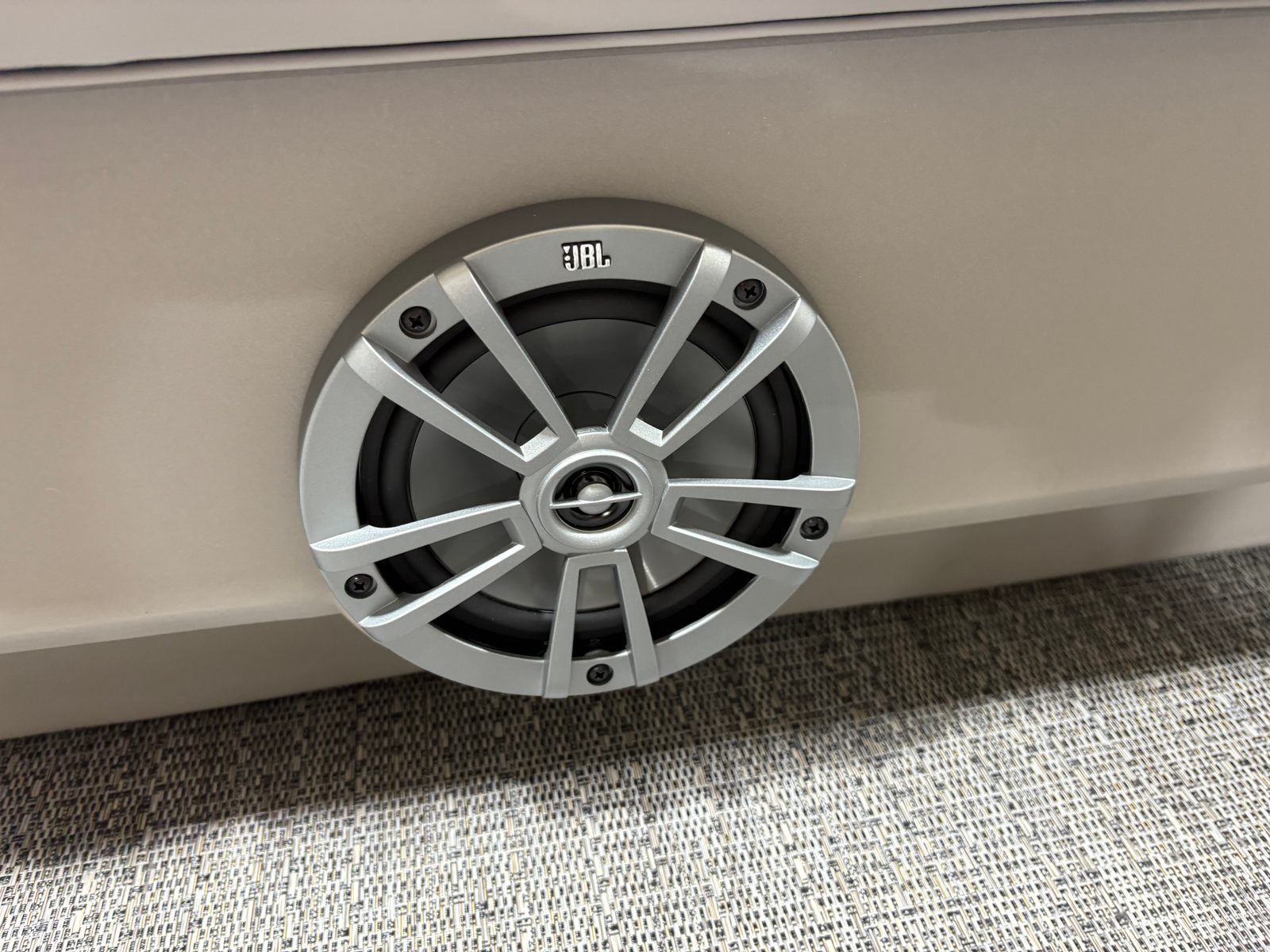 The Barletta Aria A22UC-Platinum is as practical as it is luxurious. Its manageable length makes docking and maneuvering a breeze, whether you’re at a busy marina or a quiet lakeside dock. The fuel-efficient Mercury 200L FourStroke engine helps keep operating costs low, so you can spend more time on the water and less time at the pump. The in-floor midship storage is perfect for stowing life jackets, fishing gear, or picnic supplies, keeping everything you need within easy reach. The sturdy stainless steel flag pole adds a touch of elegance and pride, while the blackout package enhances the boat’s sleek profile and protects against the elements.