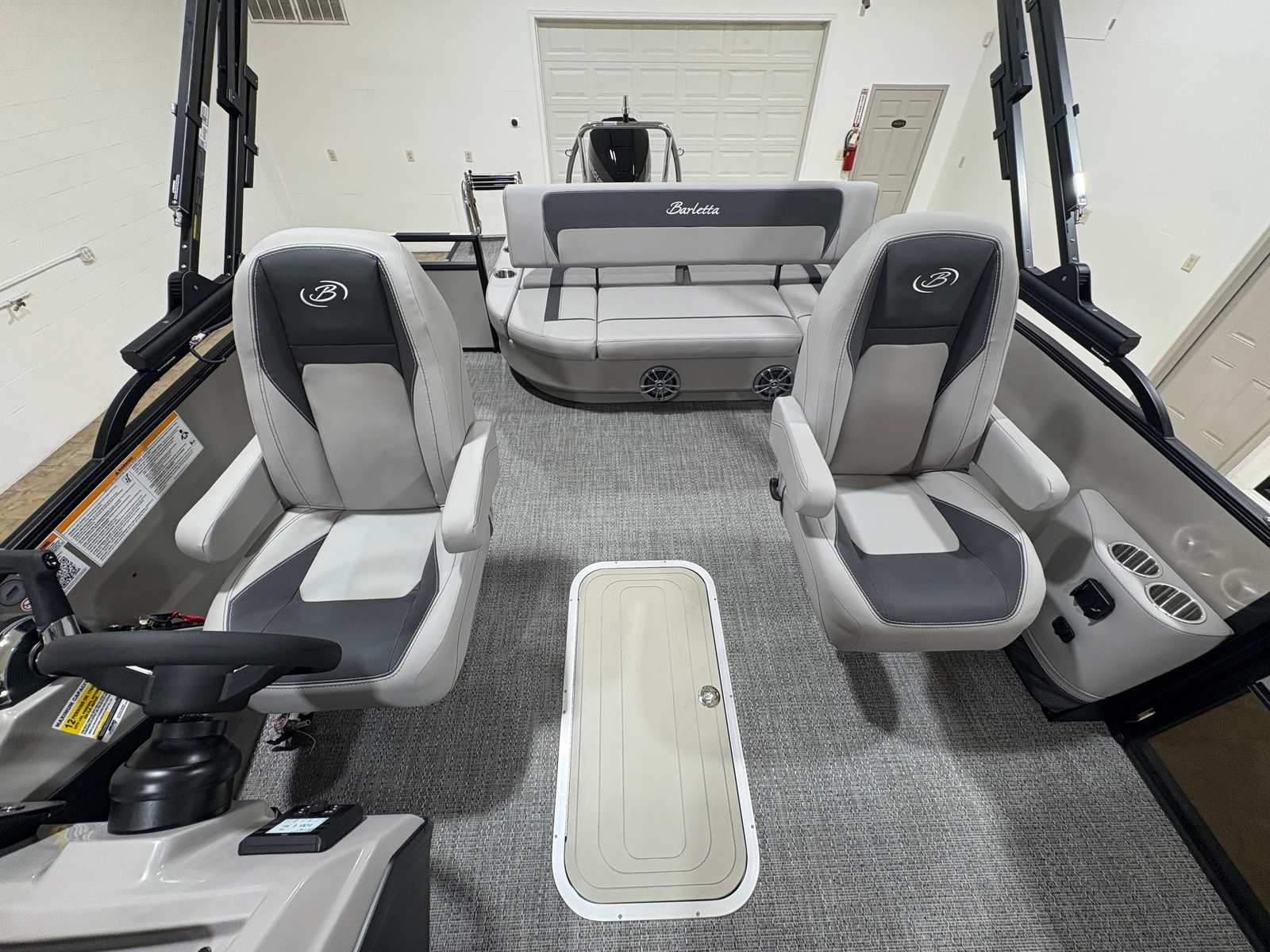 The 2026 Barletta Aria A22UC-Platinum is a brand-new pontoon boat measuring just over 21 feet in length. Its sleek design and premium build quality are immediately apparent, with the Railskin Color Aria in Champagne and the Blackout Package Aria giving it a modern, sophisticated look. The Tempest Gray furniture and Amore Gray flooring create a comfortable and inviting atmosphere, perfect for relaxing or entertaining on the water. With its triple toon package, this Barletta pontoon boat offers enhanced stability and performance, ensuring smooth cruising and a safe, enjoyable ride for everyone on board.