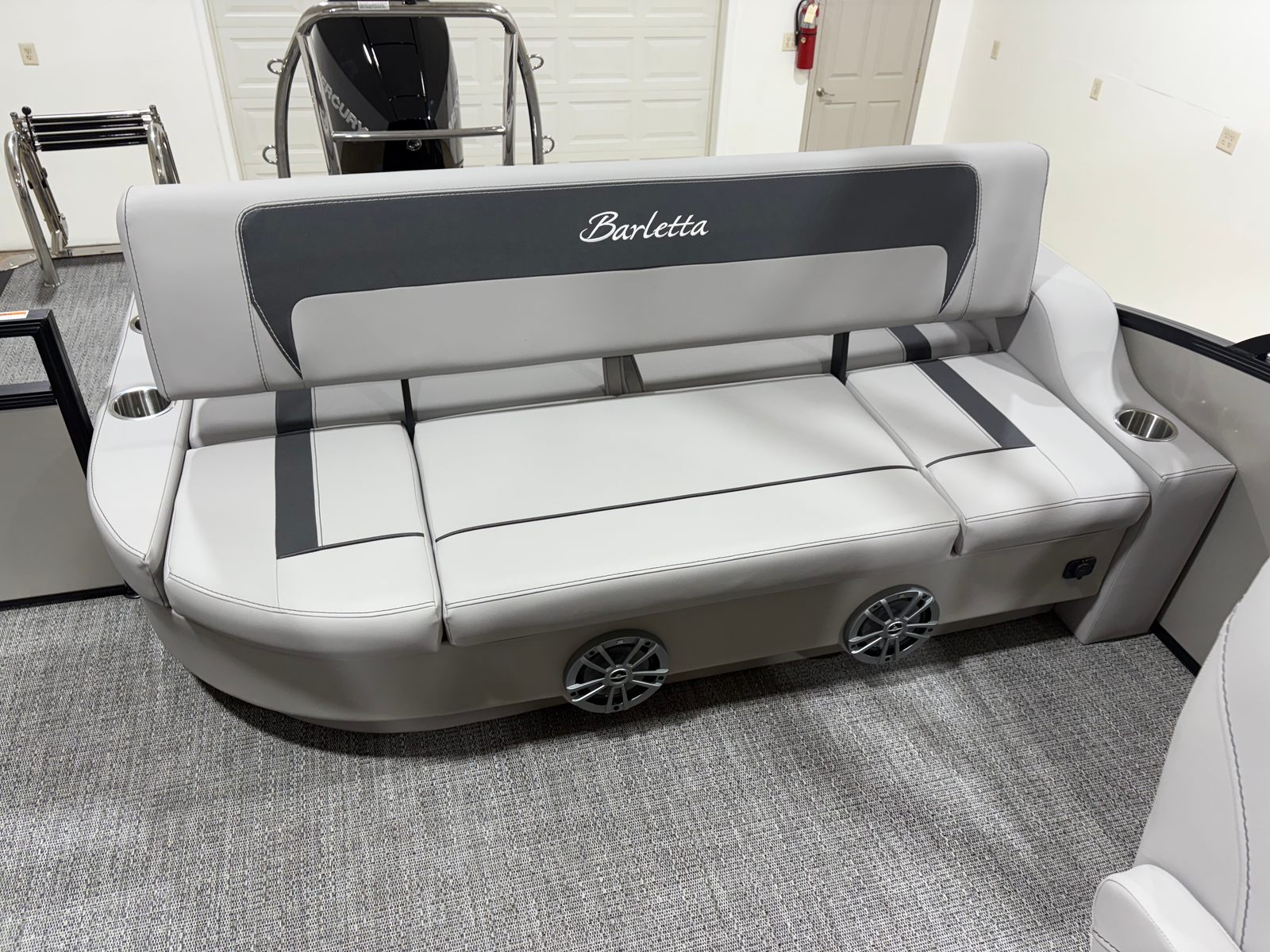 Owning the Barletta Aria A22UC-Platinum means embracing a lifestyle of fun, relaxation, and social connection. This pontoon boat is designed for comfort, with spacious seating and a thoughtfully arranged deck that encourages conversation and togetherness. The plush Tempest Gray furniture invites you to unwind, while the Amore Gray flooring is both stylish and easy to maintain. The triple toon package ensures a stable ride, so you can focus on enjoying the company of friends and family without worrying about rough waters. With ample storage options, including the in-floor midship compartment, you’ll have plenty of room for water toys, snacks, and personal items, making every trip convenient and enjoyable.