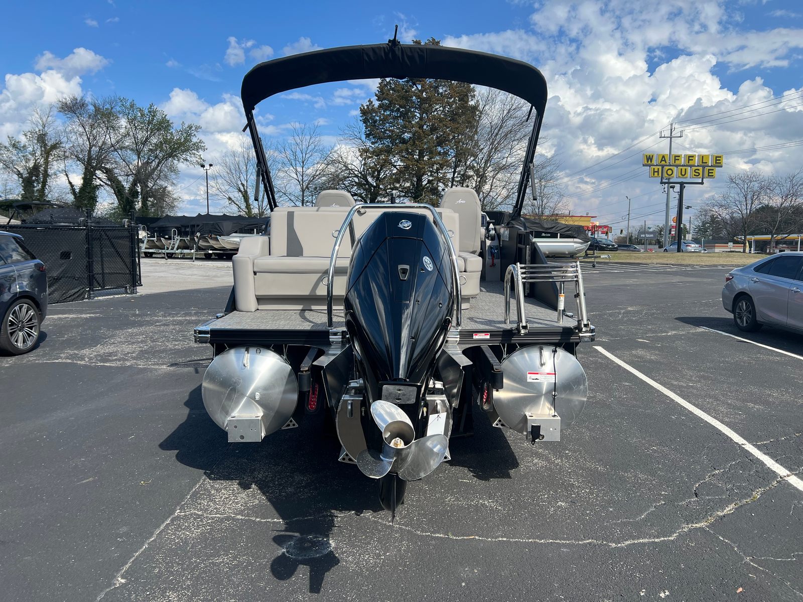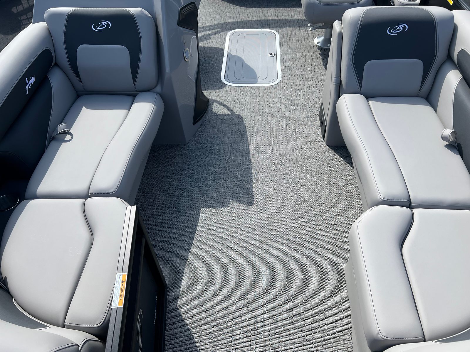 The Barletta Aria A22UC-Platinum is packed with special features that elevate your boating experience. The Railskin Color Aria in Matte Black, complemented by the Railskin Accent Aria in Winter White, creates a striking visual contrast that’s both modern and timeless. The Blackout Package Aria adds an extra touch of sophistication, ensuring your pontoon stands out from the crowd.Inside, the furniture is finished in Tempest Gray, offering plush seating and ample space for relaxation. The Amore Gray flooring is not only stylish but also practical, providing a comfortable and easy-to-clean surface. The Triple Toon Package Aria enhances stability and performance, making this pontoon boat ideal for a variety of water activities.A stainless steel flag pole with an American flag adds a patriotic flair, perfect for celebrating special occasions or simply showing your pride. Every detail is thoughtfully designed to maximize comfort, convenience, and enjoyment.