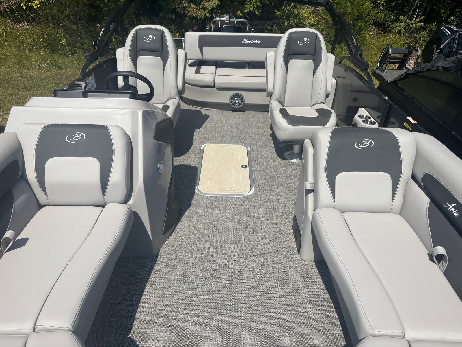 The 2026 Barletta Aria A22UC-Platinum is a brand-new pontoon boat that measures just over 21 feet in length, offering ample space for relaxation, entertainment, and fun. As a new model from Barletta, this pontoon boasts the latest innovations in design and engineering, ensuring a smooth and enjoyable ride every time you set out on the water. With its sleek Gray Moonstone Railskin color and Tempest Gray furniture, the Aria A22UC-Platinum exudes modern elegance and sophistication, making it a true head-turner at any marina or lake.
