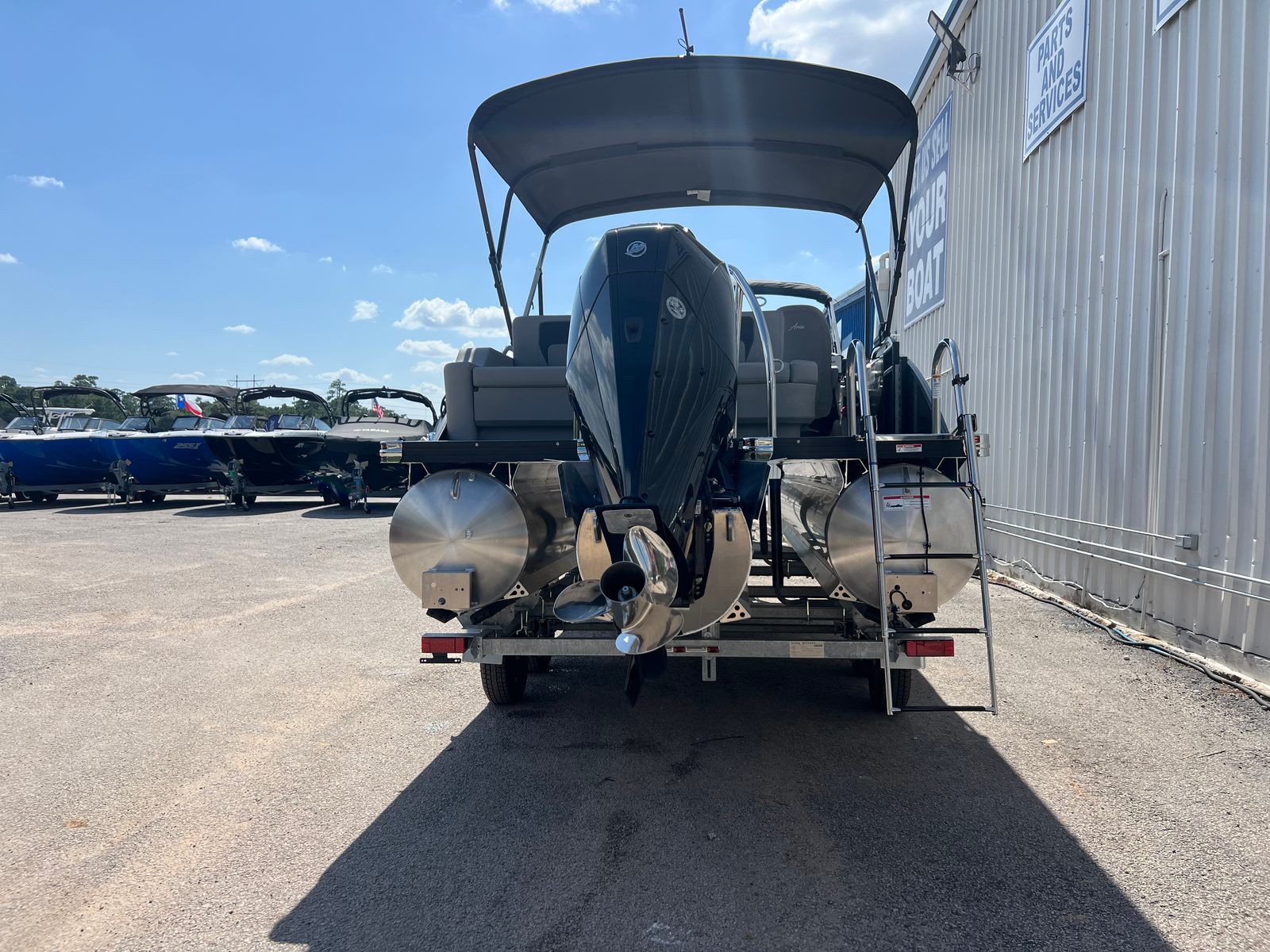 Powering the Aria A22UC-Platinum is a single Mercury (M) 200L FourStroke engine, providing an impressive 200 horsepower. This engine is renowned for its smooth acceleration, quiet operation, and fuel efficiency, making it ideal for both leisurely cruises and spirited rides across the water. The Mercury pre-rig mechanical setup ensures seamless integration and optimal performance, while the stainless steel prop enhances durability and responsiveness. Whether you’re gliding across calm waters or tackling a bit of chop, this pontoon boat offers a stable, confident ride thanks to its advanced Triple Toon Package Aria.