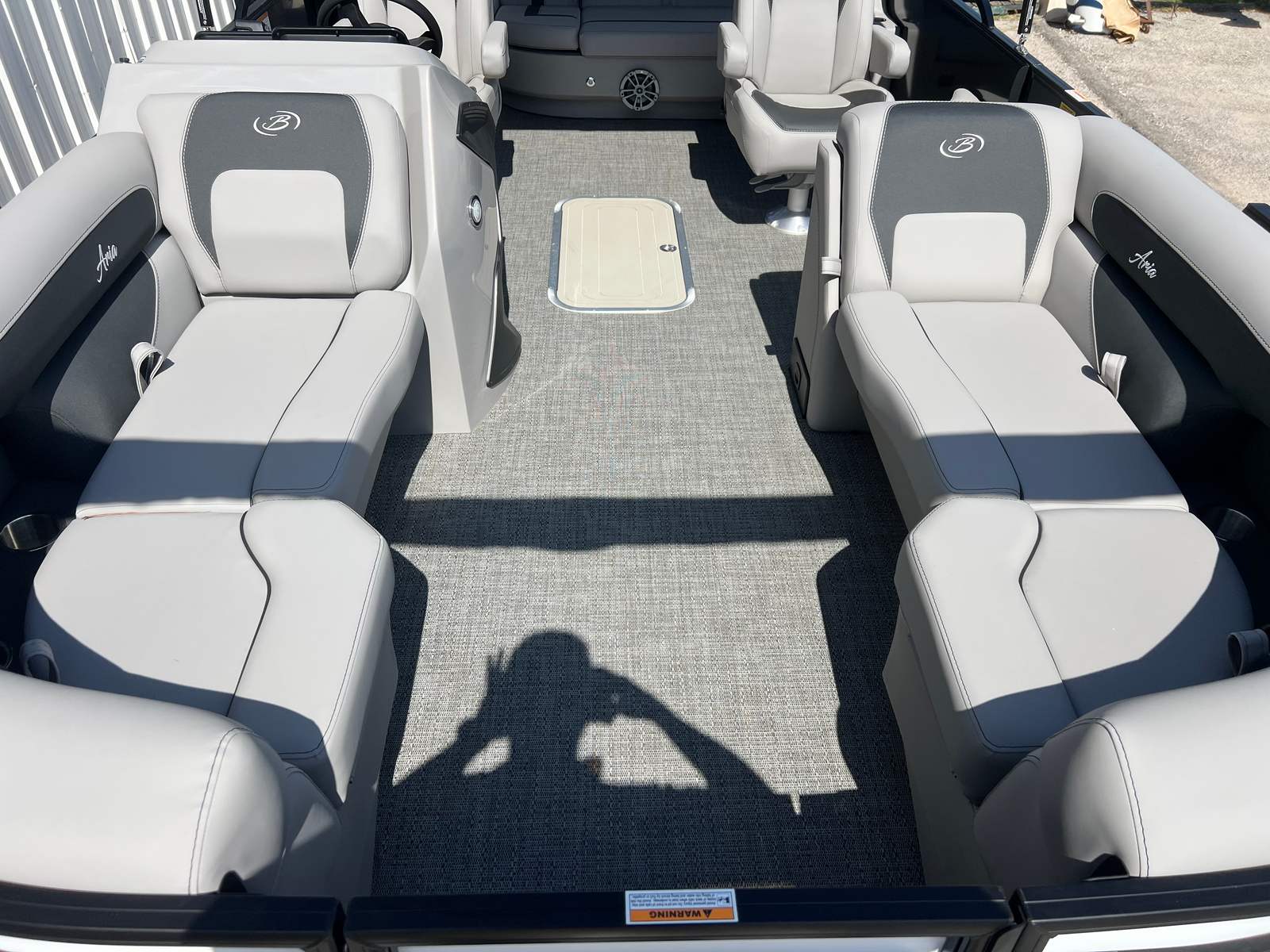Owning the Barletta Aria A22UC-Platinum means embracing a lifestyle of fun, relaxation, and social connection. The spacious deck layout is perfect for entertaining, with plenty of room for guests to lounge, dine, or dance. The plush Tempest Gray furniture invites you to sink in and unwind, while the double bimini provides cool shade for those hot summer days. The advanced Triple Toon Package Aria ensures a smooth, stable ride, even when the boat is fully loaded, so you can focus on making memories instead of worrying about balance.This pontoon boat is designed for comfort and convenience, making every outing enjoyable. The premium flooring is easy to clean and soft underfoot, while the modern railskin colors and blackout accents give the boat a striking, upscale appearance. Whether you’re hosting a sunset cocktail party or enjoying a quiet morning cruise, the Barletta Aria A22UC-Platinum delivers the perfect setting for every occasion.