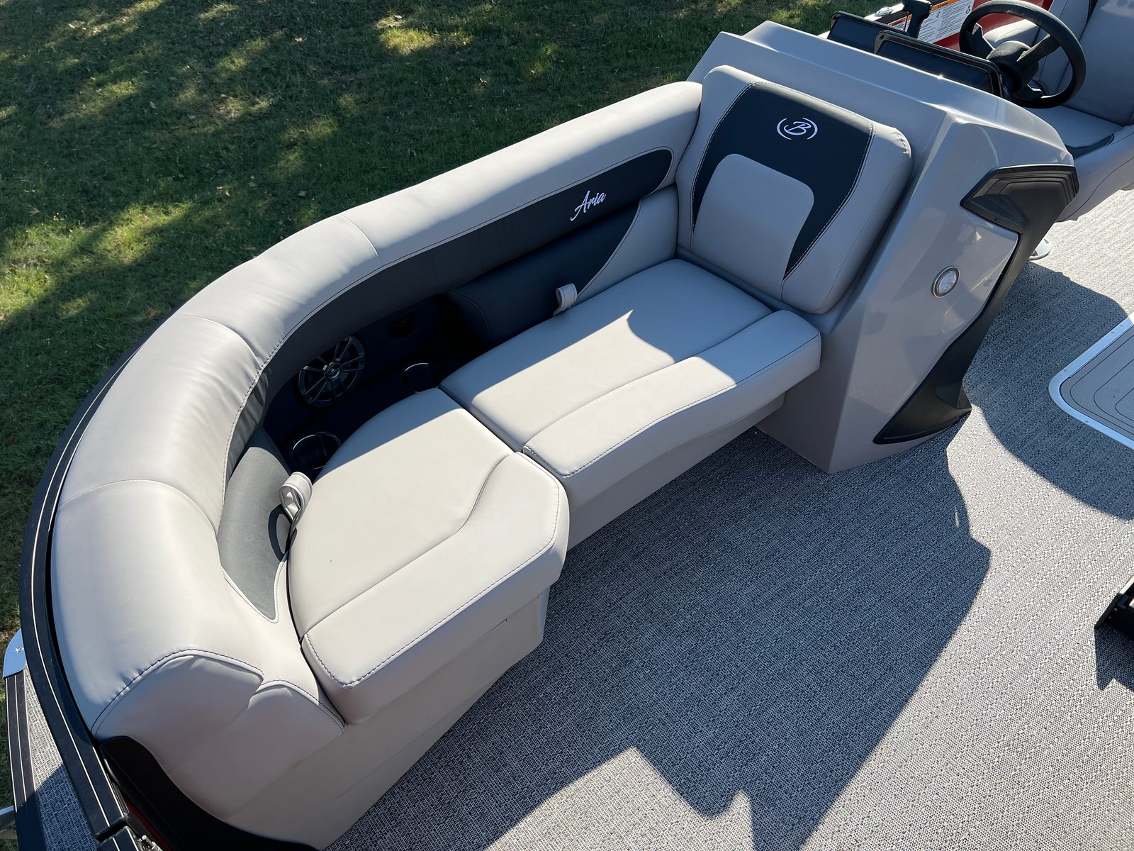 Step aboard the 2026 Barletta Aria A22UC-Platinum and experience a pontoon boat that sets new standards in craftsmanship and innovation. Measuring an impressive 21.08 feet in length, this pontoon offers ample space for entertaining, lounging, and enjoying the great outdoors. The Aria A22UC-Platinum is meticulously crafted to provide a smooth, stable ride, making it perfect for both seasoned boaters and those new to the water. Its contemporary design, highlighted by the Macau Red Railskin color and Black Diamond accent, ensures you’ll turn heads wherever you cruise.