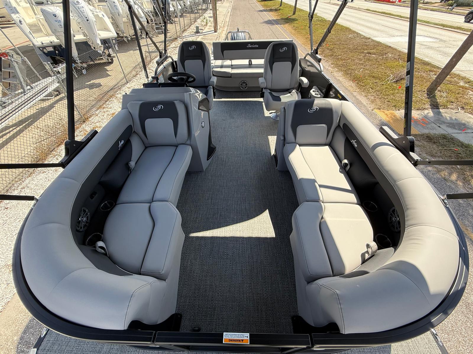 The Barletta Aria A22UC-Platinum is as practical as it is beautiful. Its 21-foot length strikes the perfect balance between spaciousness and maneuverability, making it easy to dock, trailer, and store. The efficient Yamaha engine offers excellent fuel economy, allowing you to spend more time on the water and less time at the pump. The durable Amore Gray flooring is designed for easy cleaning, so you can quickly tidy up after a day of fun. The sturdy construction and thoughtful layout provide ample storage for all your gear, from water toys to picnic supplies, ensuring you are always prepared for whatever the day brings.