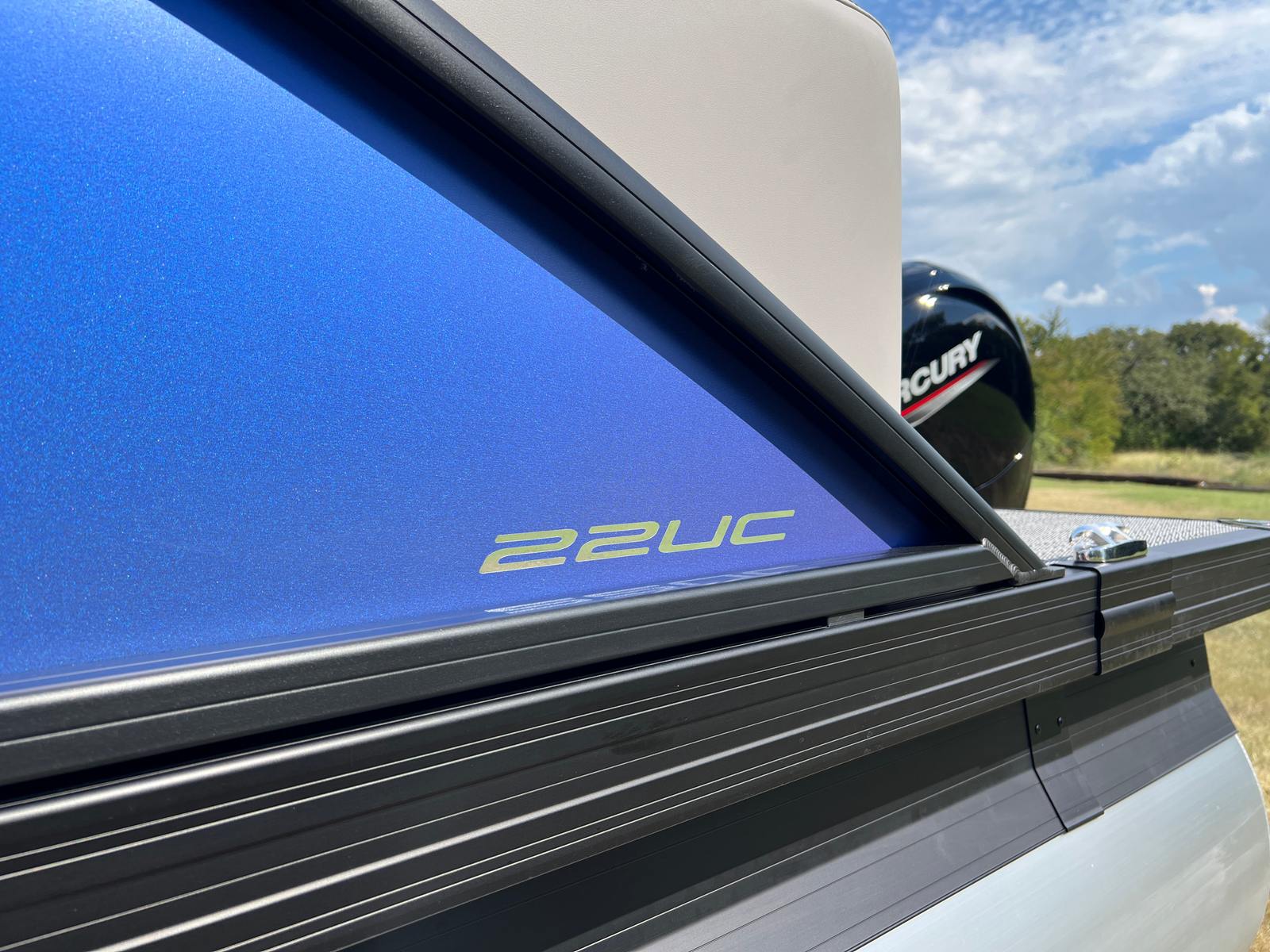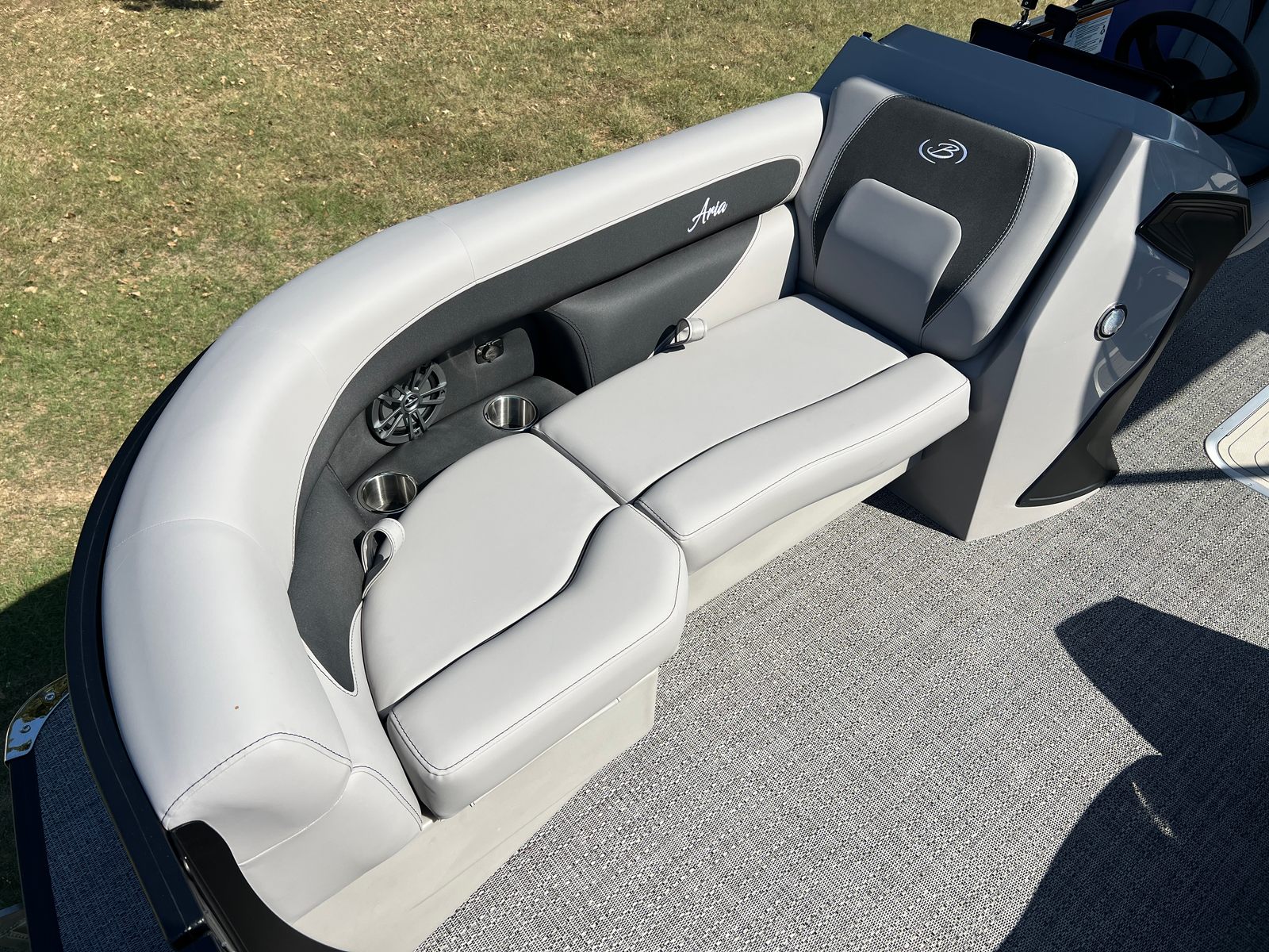 The 2026 Barletta Aria A22UC is a new pontoon boat measuring just over 21 feet in length, making it an ideal choice for families, friends, and boating enthusiasts who want ample space without sacrificing maneuverability. Barletta’s reputation for quality craftsmanship is evident in every detail of the Aria A22UC, from its sleek exterior to its thoughtfully designed interior. The combination of Pacific Matte Blue Railskin with Black Diamond accents and the Blackout Package Aria gives this pontoon a modern, sophisticated look that will turn heads at any marina or lake.