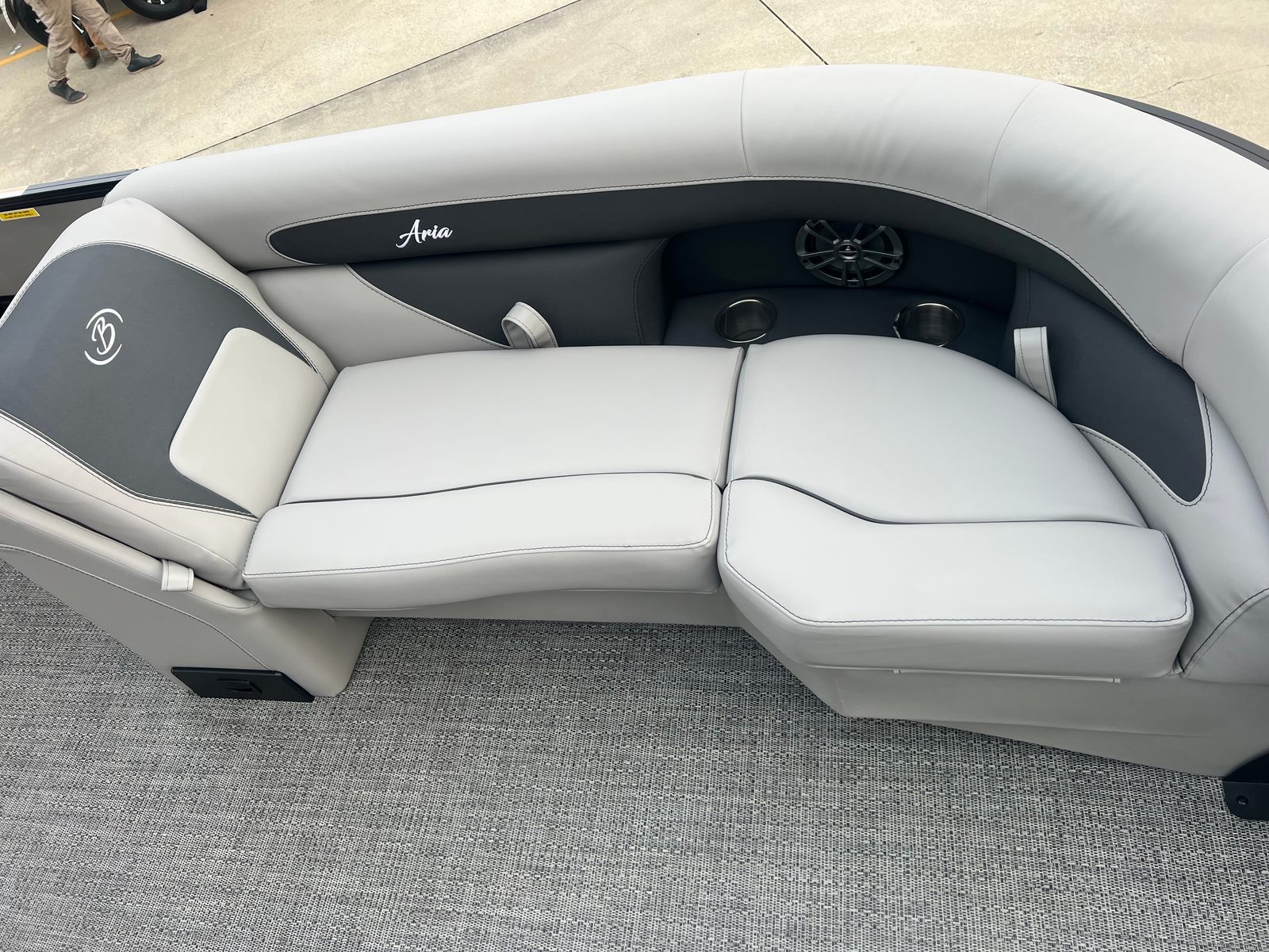 The 2026 Barletta Aria A22UC is packed with features designed to maximize comfort, convenience, and style. The Railskin Color Aria in Champagne, complemented by the Blackout Package Aria, creates a sophisticated exterior that is both eye-catching and timeless. Inside, the Tempest Gray furniture provides plush seating and a modern aesthetic, while the Amore Gray flooring offers durability and easy maintenance.The Triple Toon Package Aria adds an extra pontoon for enhanced stability and performance, making this pontoon boat ideal for a variety of activities. The onboard battery charger ensures your electronics and accessories are always ready for use, while the stainless steel flag pole with an American flag adds a patriotic touch to your boating adventures. Every detail of the Aria A22UC is thoughtfully designed to enhance your time on the water.