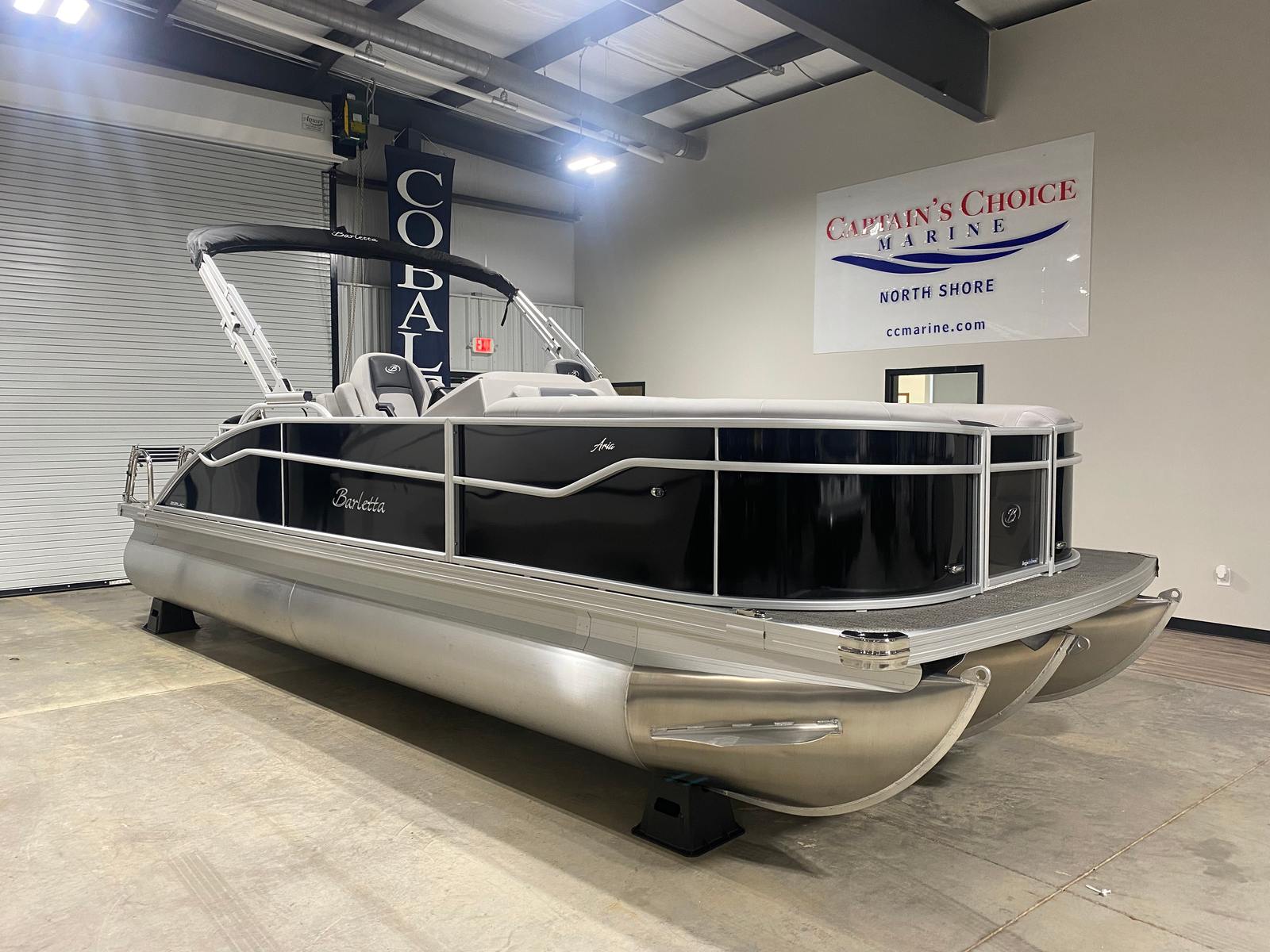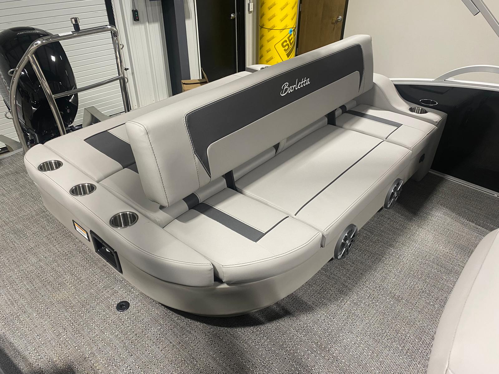 The Barletta Aria A22UC is a 2026 model pontoon boat that measures just over 21 feet in length, offering ample space for socializing, lounging, and enjoying the open water. Its contemporary aesthetic is highlighted by the Railskin Color Aria in Black Diamond, giving the boat a sophisticated and modern look that is sure to turn heads at any marina or lake. The Tempest Gray furniture and Amore Gray flooring create a harmonious and inviting atmosphere, making every outing a pleasure. As a new pontoon boat for sale, this vessel promises pristine condition and the latest advancements in pontoon design.