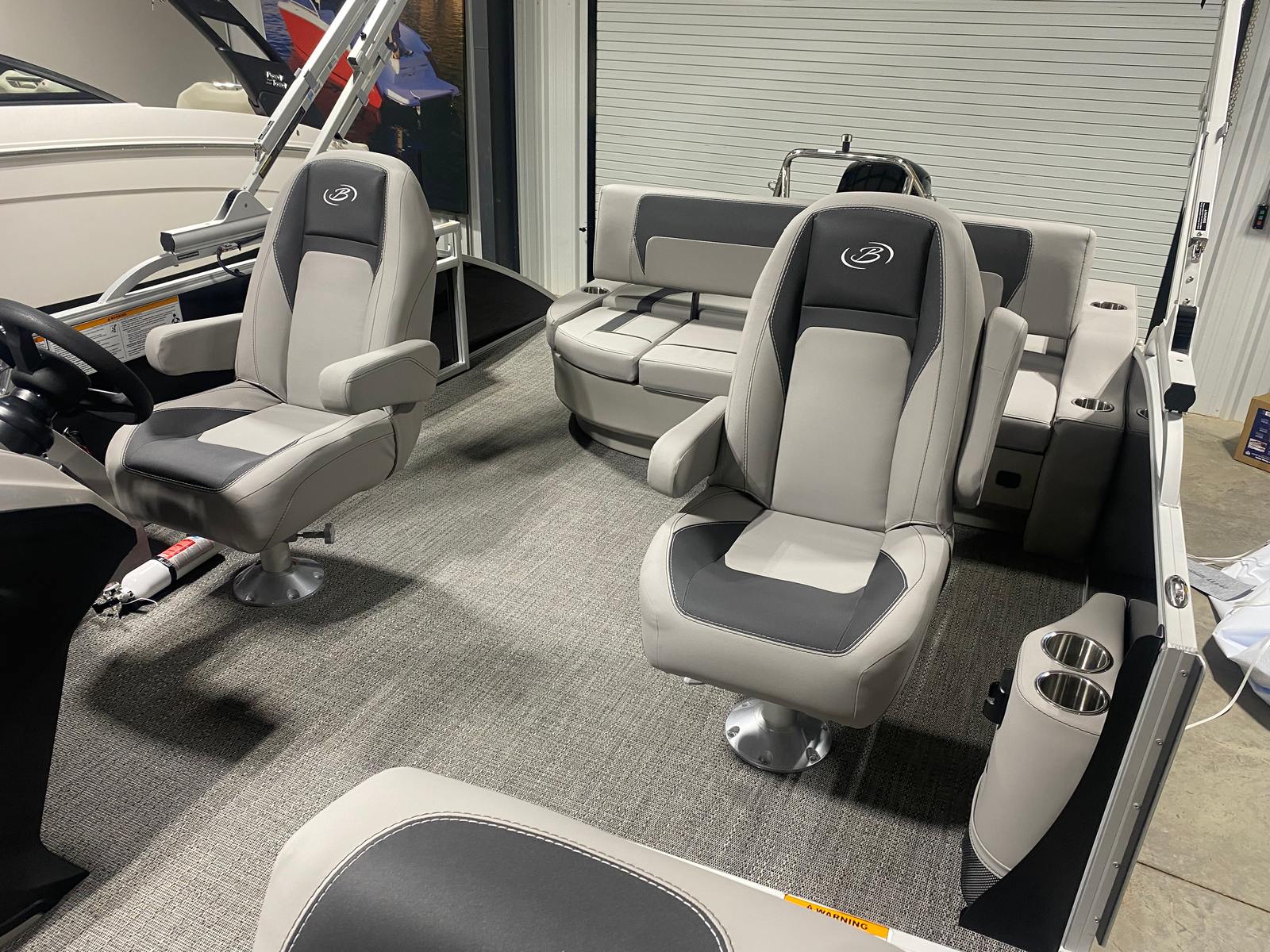 The Barletta Aria A22UC is packed with features that elevate your boating experience. The Railskin Color Aria in Black Diamond not only adds visual appeal but also provides durability and resistance to the elements. The Tempest Gray furniture offers plush seating and ergonomic design, ensuring comfort for all passengers during long days on the water. The Amore Gray flooring is both stylish and practical, providing a non-slip surface that’s easy to clean and maintain.The Triple Toon Package Aria is a standout feature, offering enhanced buoyancy and stability for a smoother ride. The Mercury mechanical pre-rigging and drop ship engine rigging streamline the setup process, allowing for quick and hassle-free installation. The exterior is adorned with a stainless steel flag pole and an American flag, adding a touch of patriotism and elegance to your pontoon. At the helm, the Eagle 5 GPS provides advanced navigation capabilities, helping you chart your course with confidence and precision.