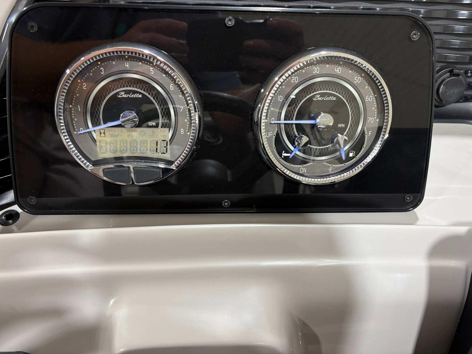 The Barletta Aria A22UC is loaded with special features that set it apart from other pontoon boats for sale. The Railskin Color Aria in Blue Sapphire, complemented by the Railskin Accent Aria in Gray Moonstone, creates a striking visual appeal that’s both elegant and contemporary. The Blackout Package Aria adds a touch of sophistication, making the boat stand out on the water. Inside, the Tempest Gray furniture offers plush comfort and stylish seating, while the Amore Gray flooring provides a durable, easy-to-clean surface that’s perfect for active days on the lake.The Clipped Playpen Cover with poles ensures your boat stays protected from the elements, preserving its pristine condition year after year. The Triple Toon Package Aria boosts performance and stability, making it easier to navigate choppy waters or enjoy high-speed runs. Rigging with a stainless steel prop further enhances efficiency and maneuverability, giving you confidence in every turn and dockside approach.