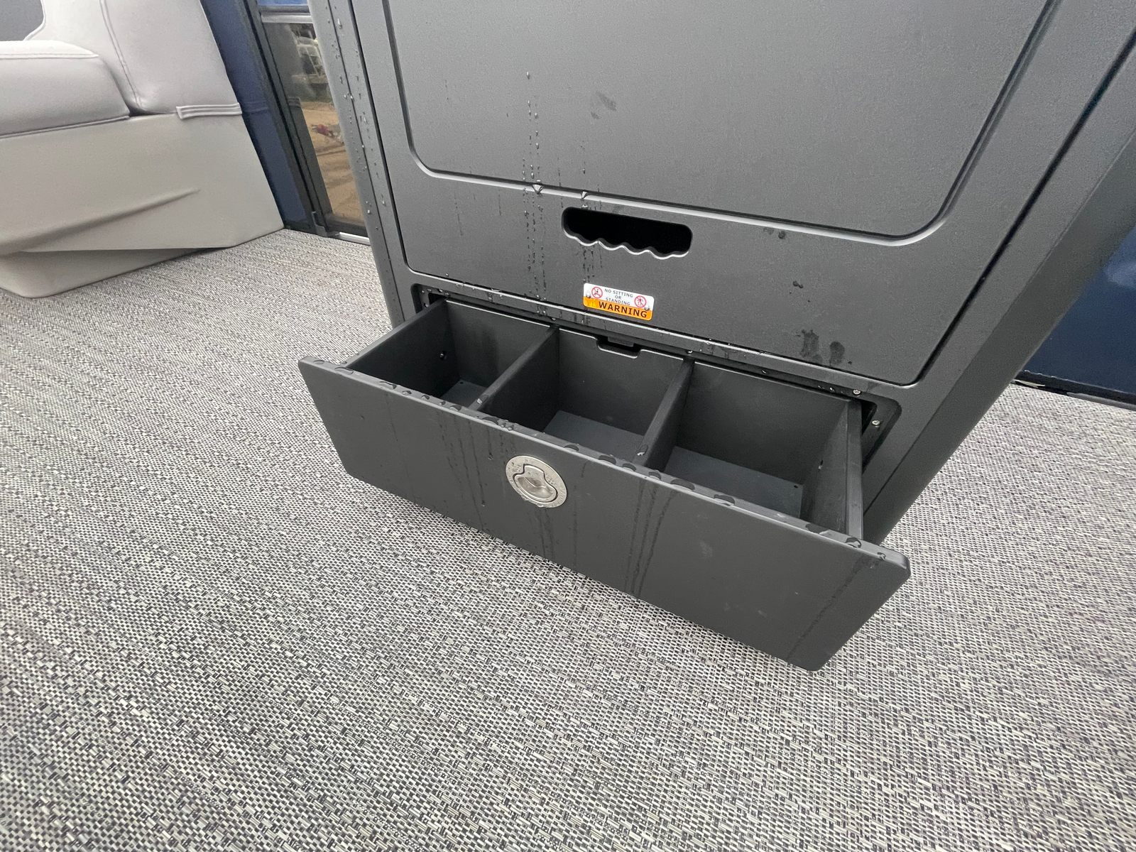 The Barletta Aria A24F is designed with practicality in mind, making ownership a breeze. Its spacious layout provides ample storage for gear, snacks, and water toys, keeping the deck clutter-free and organized. The efficient Mercury engine offers excellent fuel economy, allowing you to spend more time on the water and less time at the pump. Docking is simple and stress-free, thanks to the boat’s responsive handling and well-thought-out design. The durable flooring and high-quality furniture are easy to clean and maintain, ensuring your pontoon boat stays looking its best season after season. Whether you’re planning a day trip or a weekend getaway, the Aria A24F is equipped to handle all your boating needs with ease.