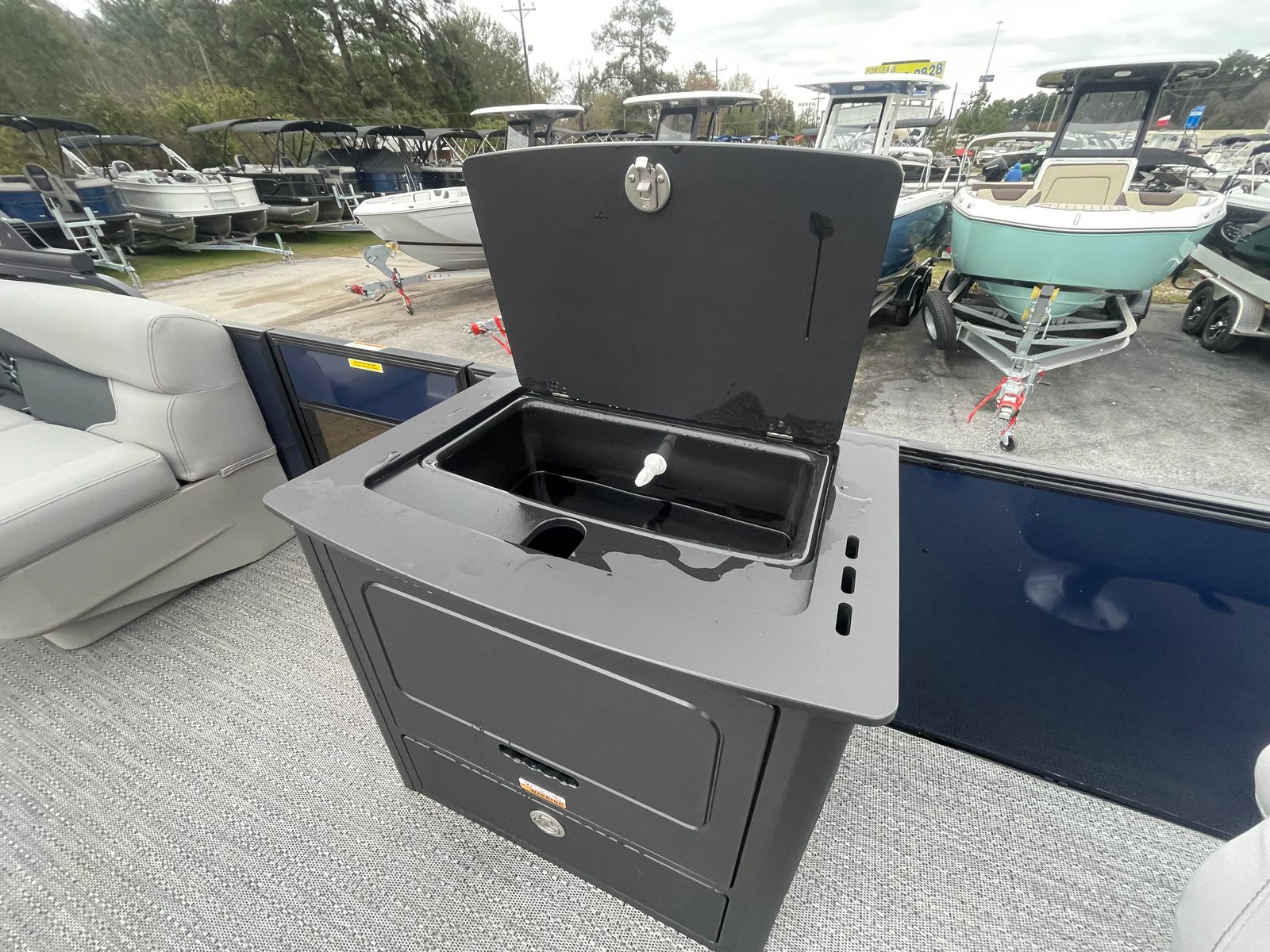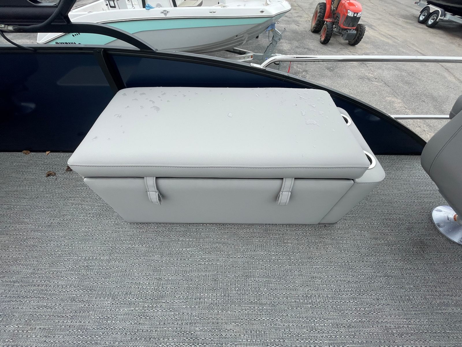 Powering the Barletta Aria A24F is a single Mercury (M) 200L FourStroke engine, delivering a robust 200 horsepower for smooth cruising and exhilarating rides. This engine is expertly pre-rigged with Mercury mechanical controls and features a stainless steel prop for optimal efficiency and durability. Whether you’re gliding across calm lakes or tackling more spirited waters, the Aria A24F’s Triple Toon Package ensures enhanced stability, superior handling, and a comfortable ride for all on board. This pontoon boat for sale is engineered to provide reliable performance, making every outing enjoyable and worry-free.