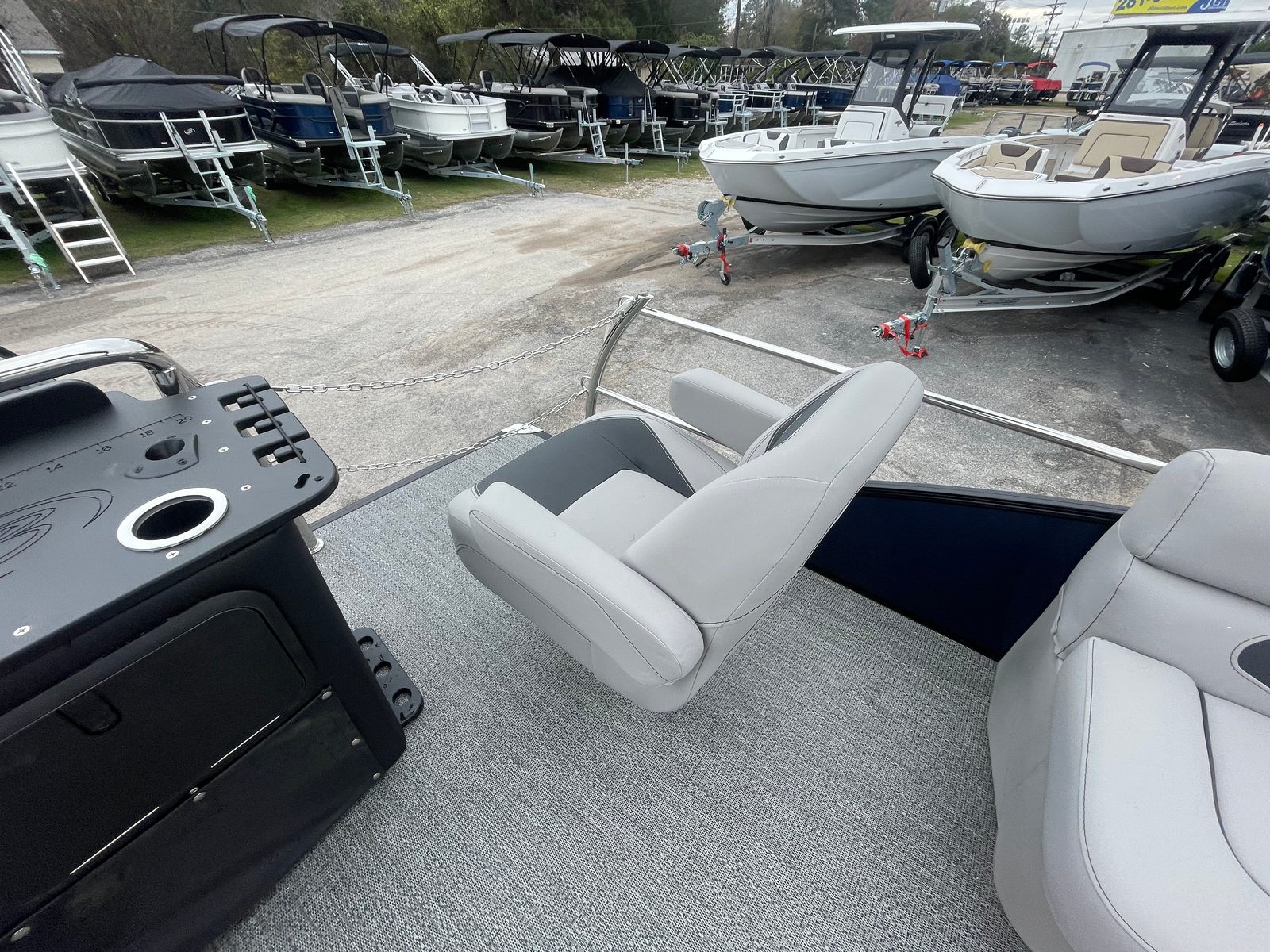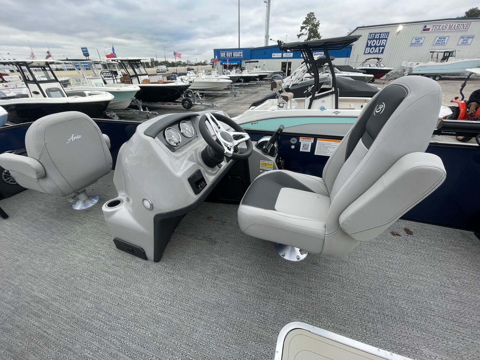 The 2025 Barletta Aria A24F pontoon boat is a standout choice for anyone seeking a blend of style, performance, and versatility. With its striking Blue Sapphire and Gray Moonstone railskin, Blackout Package, Tempest Gray furniture, Amore Gray flooring, Triple Toon Package, and powerful Mercury 200L FourStroke engine, this new pontoon boat for sale offers everything you need for memorable days on the water. Enjoy the benefits of spacious comfort, reliable performance, and practical features that make boating easy and enjoyable. Don’t miss the opportunity to own a Barletta boat for sale that truly elevates your recreational lifestyle. Contact your local dealer today to learn more about the Barletta Aria A24F and start planning your next adventure on the water.