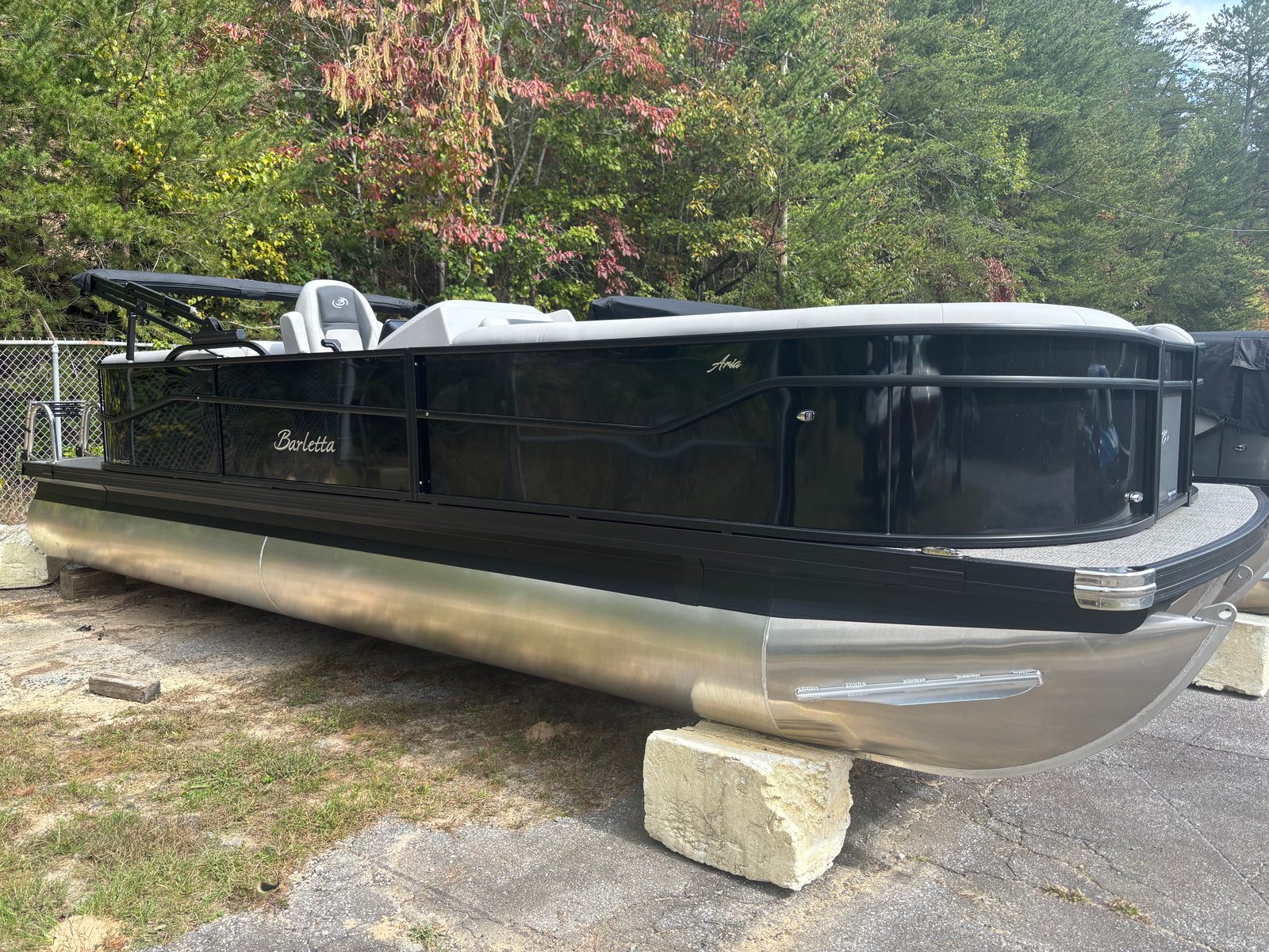 The 2026 Barletta Aria A24QC is packed with premium features designed to enhance your boating experience. The Triple Toon Package Aria provides added stability and buoyancy, allowing for a smoother ride and improved handling, especially when carrying a full complement of passengers. The in-floor midship storage, available with the triple toon configuration, offers convenient space to stow gear, water toys, and personal items, keeping the deck clutter-free and organized.Aesthetically, the Black Diamond Railskin color and Blackout Package Aria give this pontoon a sophisticated, modern look that stands out on the water. The Tempest Gray furniture provides a stylish and comfortable seating arrangement, perfect for lounging or entertaining guests. At the helm, the Simrad 7" G07 XSE display offers advanced navigation and system monitoring, putting essential information at your fingertips for a safer and more enjoyable boating experience.The exterior is accented by a stainless steel flag pole with an American flag, adding a touch of patriotic flair and elegance. Every detail, from the quality of the materials to the thoughtful layout, reflects Barletta’s commitment to excellence and innovation.