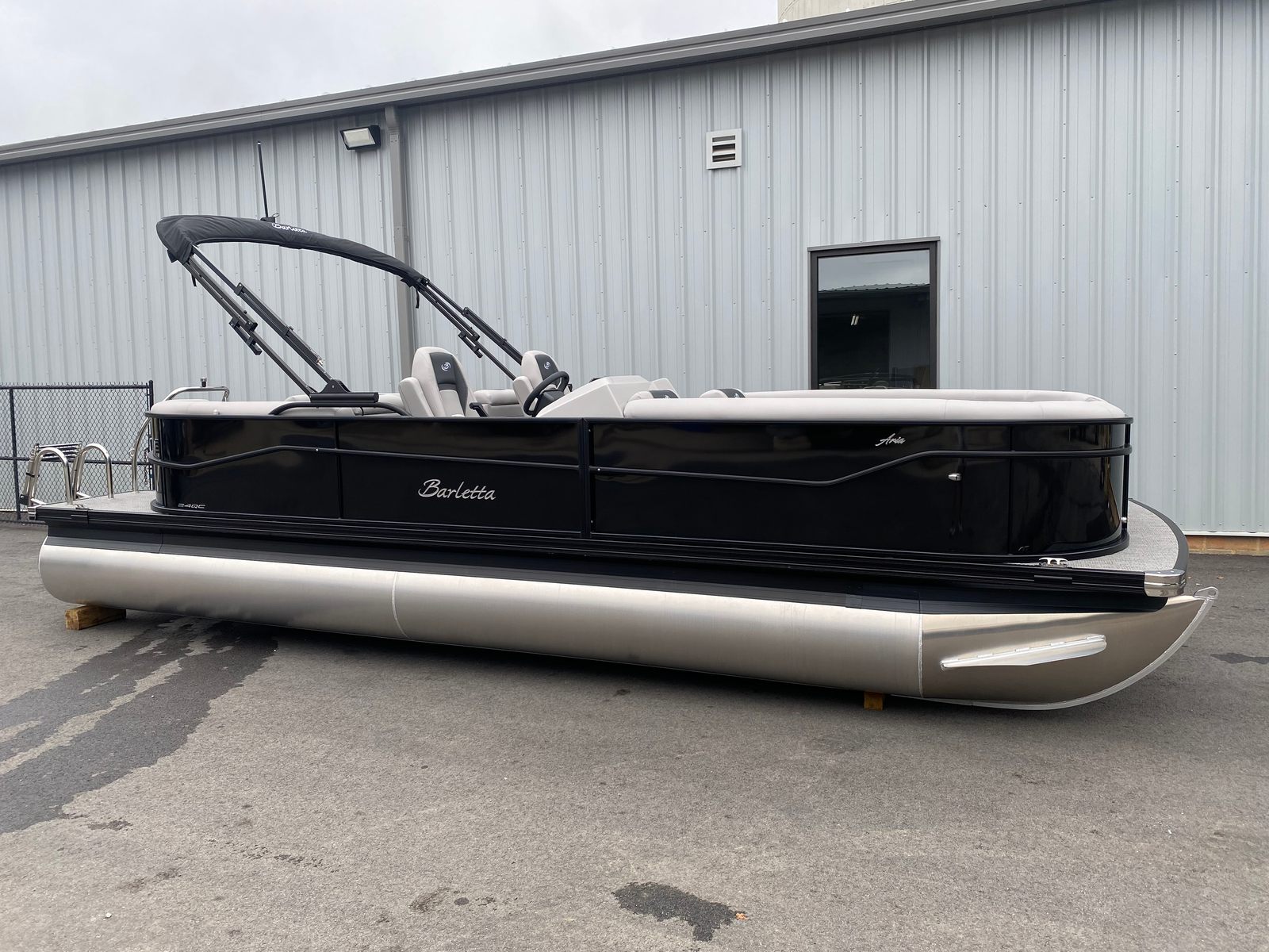 Step aboard the 2026 Barletta Aria A24QC and experience a new standard in pontoon boating. Measuring just over 23 feet in length, this pontoon boat offers ample space for relaxing, entertaining, and enjoying the open water. The Aria A24QC’s sleek profile is enhanced by the Railskin Color Aria in Black Diamond and the Blackout Package Aria, giving it a modern, sophisticated look that turns heads at the marina or on the lake. With its new condition, you can be confident you’re investing in a pontoon boat that’s ready to deliver years of reliable enjoyment.