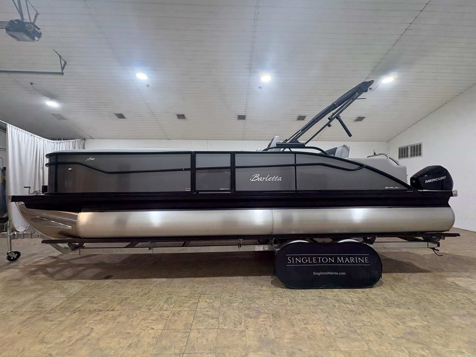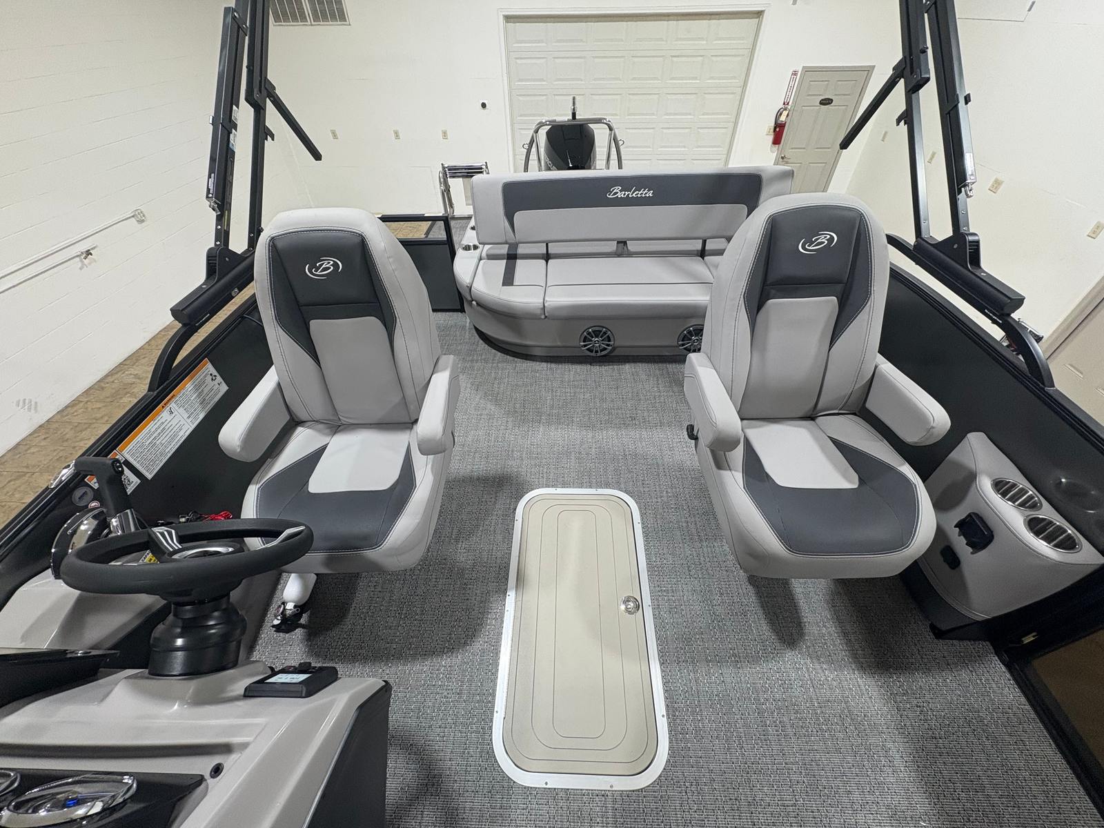 The Barletta Aria A24UC is designed with practicality in mind, making ownership as enjoyable as time spent on the water. The in-floor midship storage (available with the Triple Toon Package) allows you to stow away life jackets, fishing gear, and other essentials, keeping the deck clutter-free and organized. The power assist steering and stainless steel prop make docking and maneuvering effortless, even for novice boaters.Fuel efficiency is a hallmark of the Mercury 200L FourStroke engine, ensuring you can spend more time cruising and less time refueling. The durable flooring and high-quality furniture are easy to clean and maintain, so your pontoon boat stays looking its best season after season. With its generous length and stable triple toon design, the Aria A24UC offers plenty of space for guests, coolers, and water sports equipment, making it a versatile platform for all your boating adventures.