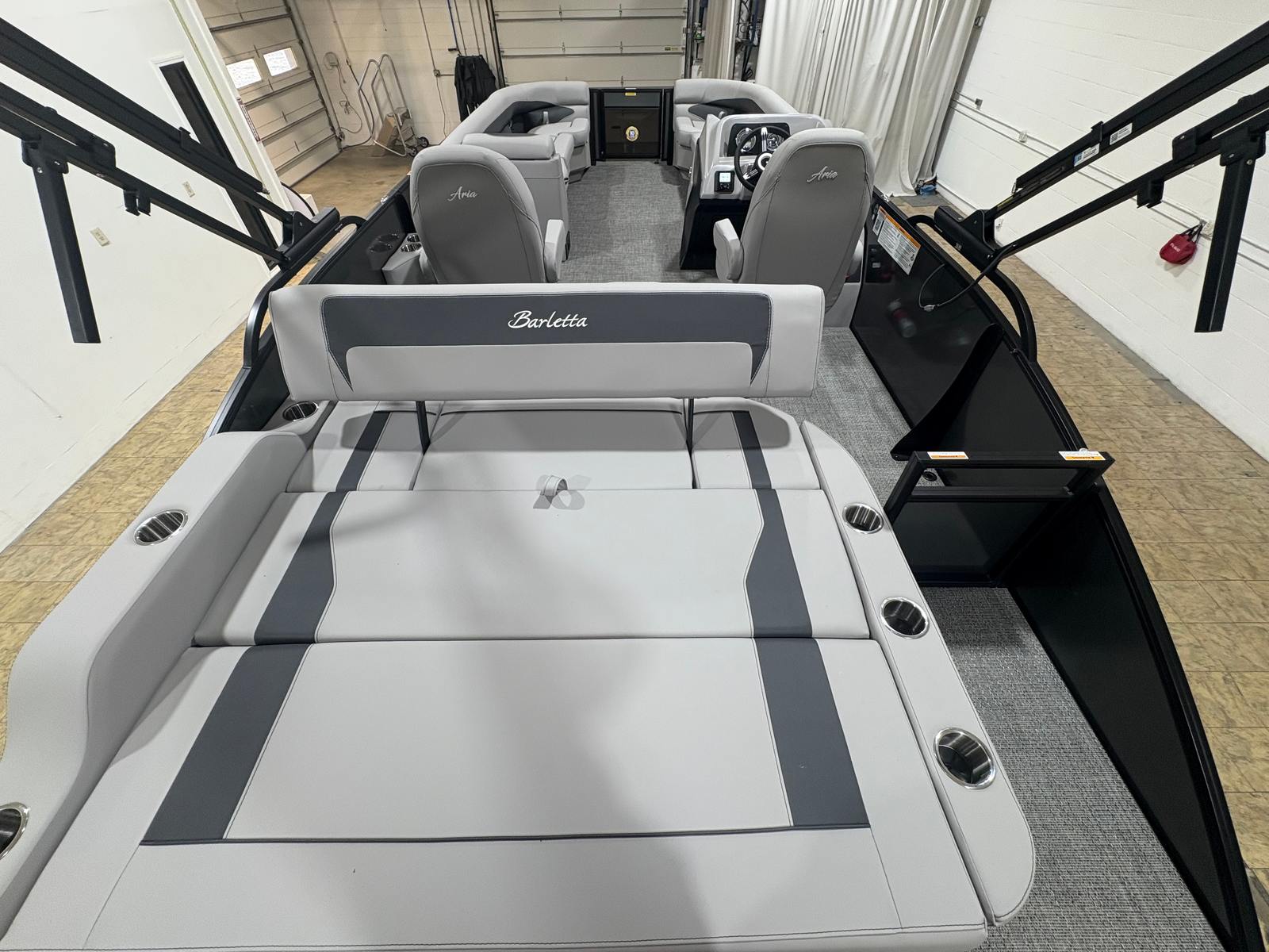 Owning the Barletta Aria A24UC means embracing a lifestyle of fun, relaxation, and connection. The spacious deck and luxurious seating invite you to unwind with friends and family, while the advanced engine and triple toon configuration ensure a smooth, stable ride. The ample storage solutions keep your essentials organized and accessible, so you can focus on enjoying the day. Whether you’re hosting a sunset cruise, celebrating a special occasion, or simply soaking up the sun, this pontoon boat creates the perfect setting for unforgettable moments.The stylish Railskin and Blackout Package not only enhance the boat’s appearance but also provide a sense of exclusivity and pride of ownership. The Tempest Gray furniture and Amore Gray flooring offer a modern, cohesive look that complements any waterfront backdrop. With the Barletta Aria A24UC, every outing becomes an opportunity to create lasting memories.