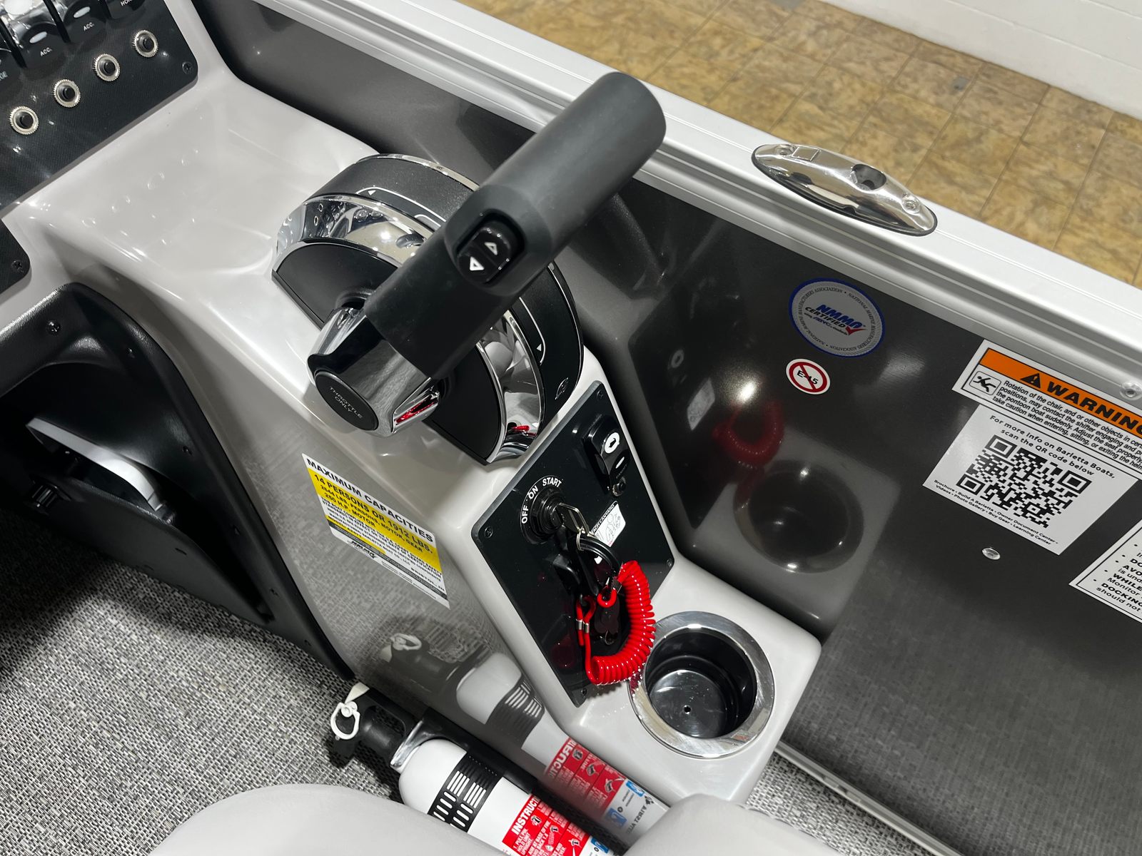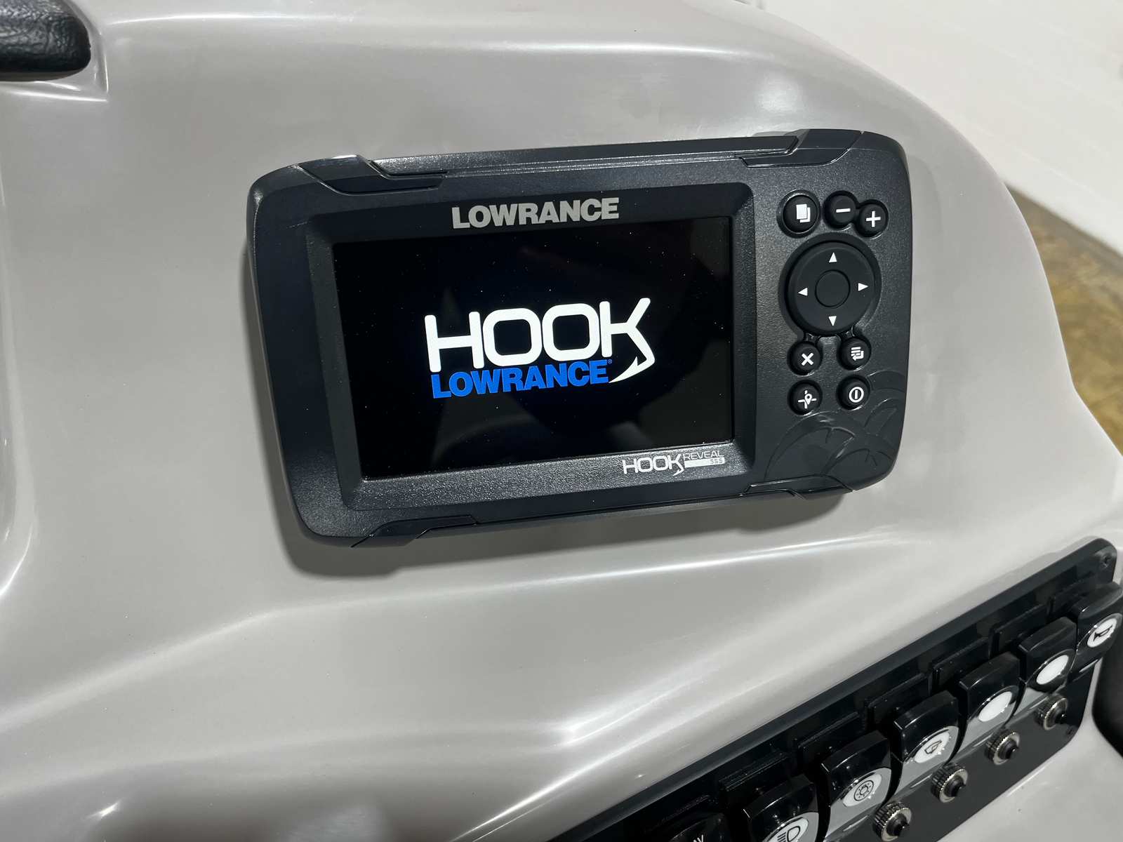 This Barletta pontoon boat is loaded with premium features designed to maximize comfort, convenience, and enjoyment. The Amore Gray flooring provides a stylish and durable foundation, while the Triple Toon Package Aria enhances stability and performance, allowing for smoother rides and increased capacity. The furniture, finished in Tempest Gray, offers plush seating and a modern look, ensuring that every passenger can relax in style.Navigation is a breeze with the integrated Hook 5 GPS, providing accurate and user-friendly guidance for all your adventures. The Railskin Color Aria in Gray Moonstone, complemented by the Railskin Accent Aria in Matte Black, creates a sophisticated exterior that stands out on the water. The pre-rigged Mercury mechanical setup ensures seamless integration with the engine, while the in-floor midship storage offers convenient space for stowing gear, water toys, or picnic essentials.