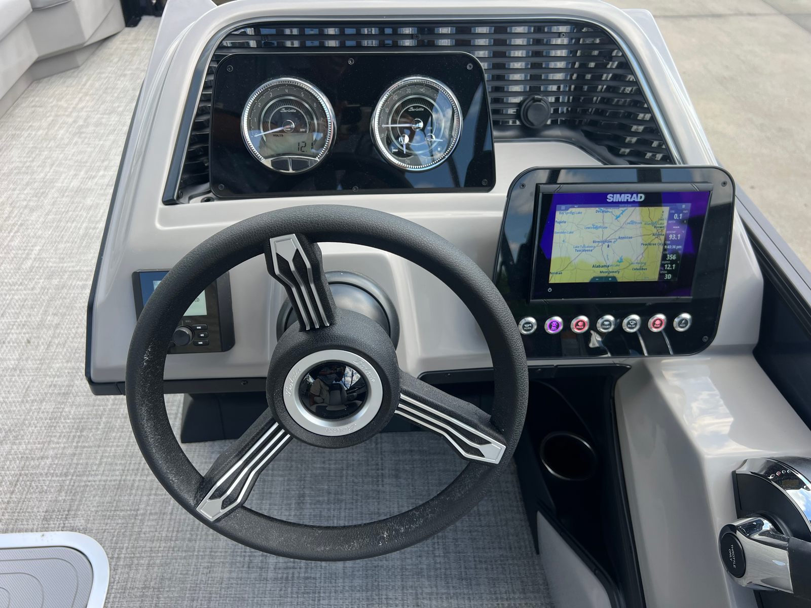 Practicality meets luxury in the Barletta Aria A24UC. The in-floor midship storage keeps your deck clutter-free, allowing you to bring along everything you need for a day on the water without sacrificing space or comfort. The clipped playpen cover with poles offers peace of mind, protecting your investment from sun, rain, and debris when your pontoon is docked or stored.Docking and maneuvering are made simple with the power assist steering and responsive Mercury engine, so you can easily navigate tight spaces or busy marinas. The durable stainless steel prop ensures reliable performance and minimal maintenance, giving you more time to enjoy your boat and less time worrying about upkeep. Whether you are a seasoned boater or new to the world of pontoons, the Barletta Aria A24UC is designed to make ownership easy and enjoyable.