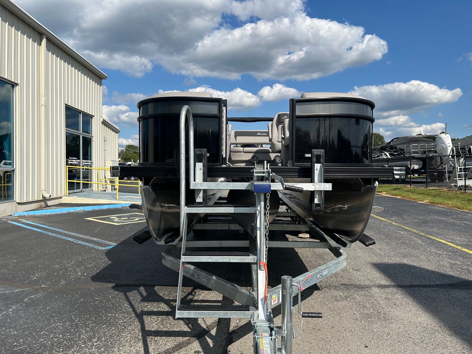 The 2026 Barletta Aria A24UC is a new pontoon boat that measures just over 23 feet in length, offering ample space for relaxation, entertainment, and fun. This model is crafted with Barletta’s renowned attention to detail, ensuring every outing is comfortable and memorable. The Aria A24UC’s sleek profile, enhanced by its Black Diamond railskin color and Gray Moonstone accent, makes a bold statement at any marina or lakeside dock. The Blackout Package Aria further elevates its modern aesthetic, giving the boat a sophisticated and contemporary look that is sure to turn heads.