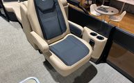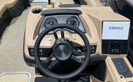 Features and SpecificationsThe Barletta Cabrio C22QC is packed with premium features that set it apart from other pontoon boats for sale. The triple toon package with midship storage provides extra space for gear, water toys, and essentials, keeping the deck clutter-free and organized. Navigation and entertainment are elevated by the Simrad 7" G07 XSR Chartplotter/Multifunction Display, offering intuitive controls and real-time information for a safer, more enjoyable boating experience.Aesthetically, the Railskin Color in Black Diamond, complemented by a Matte Black accent, gives the boat a striking, contemporary look. The interior RGB lighting package creates a customizable ambiance, perfect for evening cruises or lively gatherings. The furniture, finished in Carmella Tan with Onyx accents, offers plush seating and a refined atmosphere, ensuring every passenger rides in comfort and style.Additional touches like the stainless steel flag pole with an American flag add a sense of pride and personality to your vessel, making it truly unique. Every detail, from the rigged engine with a stainless steel prop to the thoughtfully designed interior, reflects Barletta’s commitment to quality and innovation.