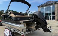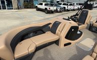 Features and SpecificationsThe Barletta Cabrio C22UC is loaded with premium features designed to enhance your time on the water. The Black Diamond Railskin color, paired with the Blackout Package Cabrio, gives the exterior a modern and sophisticated look. Inside, the Carmella Tan with Onyx furniture provides a luxurious and inviting atmosphere, complemented by the Amore Tan flooring for added comfort and style.The Triple Toon Package with midship storage offers enhanced stability and ample space for all your gear, ensuring you have everything you need for a day of fun. The onboard battery charger with two batteries keeps your electronics powered up, while the stainless steel flag pole with an American flag adds a patriotic touch to your boat’s profile. Every detail, from the rigged engine with a stainless steel prop to the thoughtfully designed storage solutions, is crafted to provide a seamless and enjoyable boating experience.