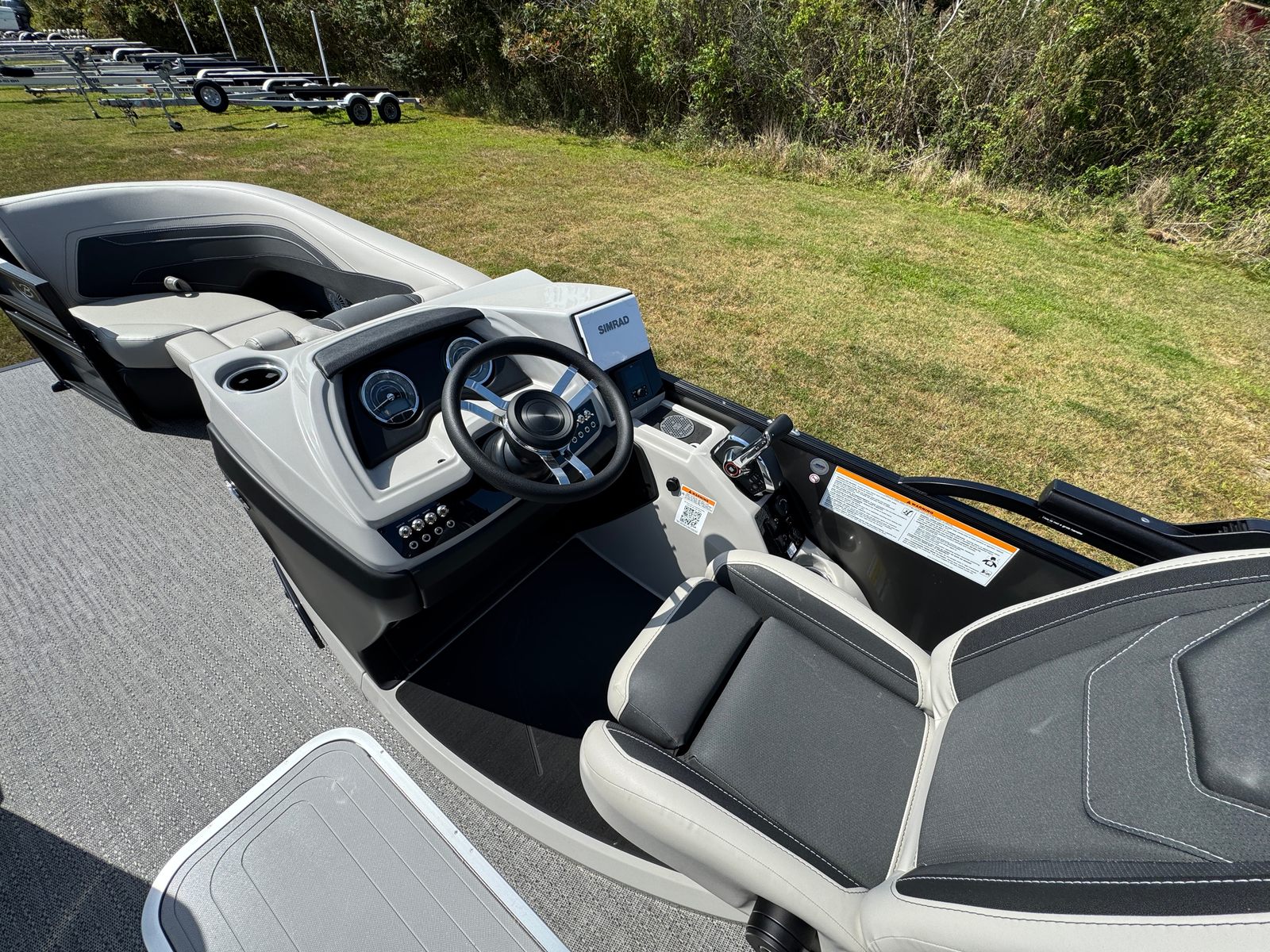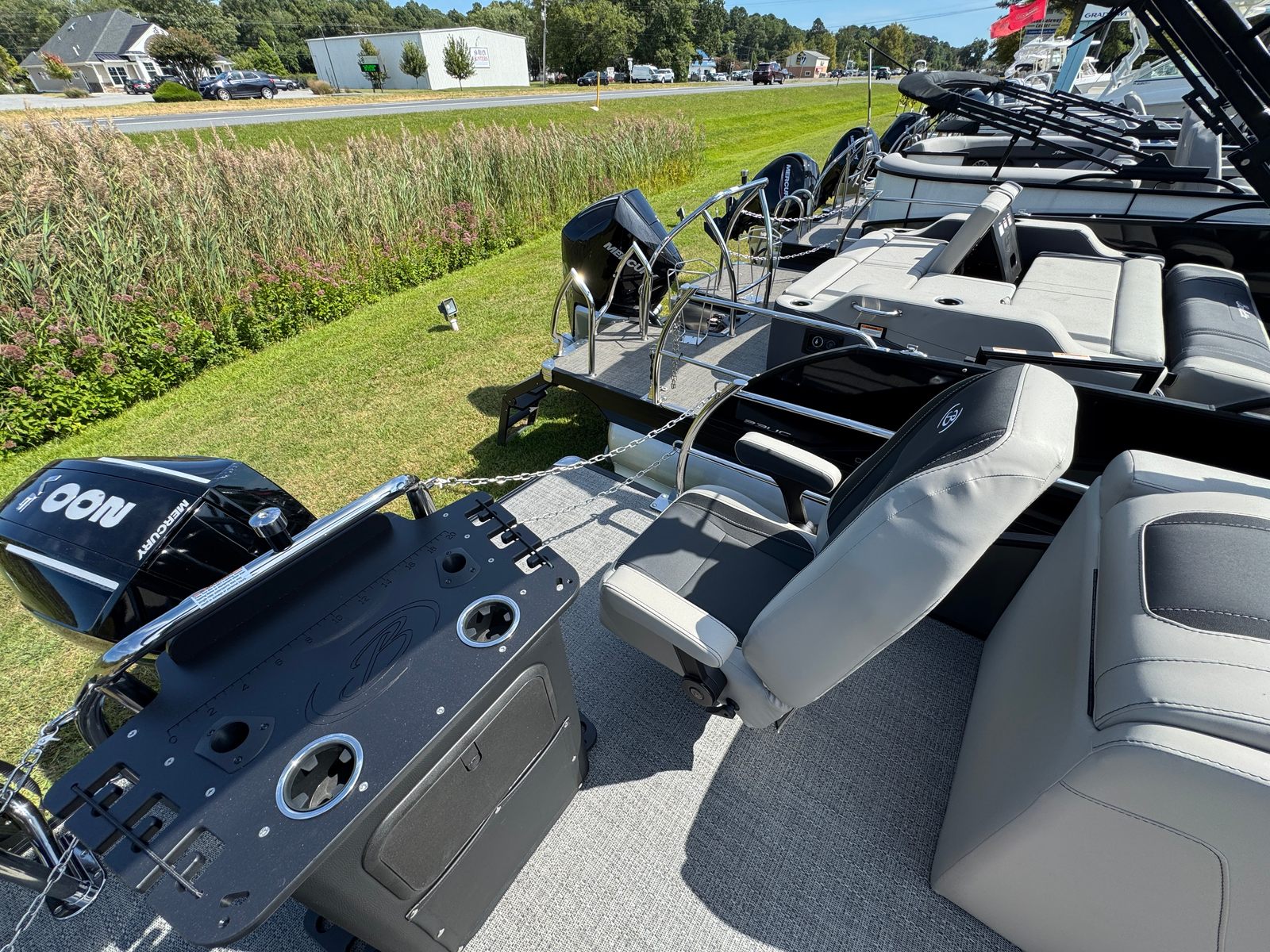 The Barletta Cabrio C22CC is loaded with special features that set it apart from other pontoon boats for sale. The Blackout Package Cabrio gives the boat a bold, modern look, while the Marquesan Gray with Onyx furniture provides a sophisticated and comfortable seating arrangement for all passengers. The Amore Gray flooring is both stylish and practical, offering a durable and easy-to-clean surface that stands up to the demands of active days on the water.As part of the Coastal Edition Cabrio (CC Models), this pontoon is designed to handle a variety of water conditions, making it a versatile choice for both inland lakes and coastal adventures. The Triple Toon Package with midship storage adds stability, buoyancy, and extra storage space, ensuring you have plenty of room for gear, water toys, and essentials for a full day of fun.