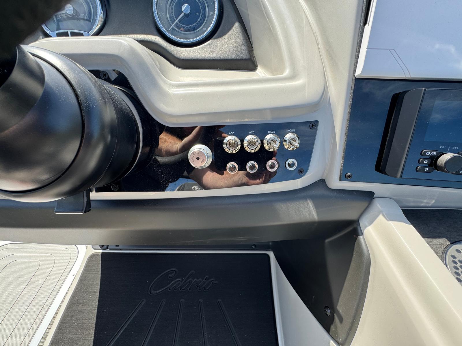 Under the deck, the Cabrio C22CC is powered by a single Mercury (M) 200L FourStroke engine, delivering an impressive 200 horsepower. This engine is renowned for its reliability, smooth operation, and fuel efficiency, ensuring you can cruise, entertain, or explore with confidence. The Mercury Digital DTS Pre-Rig for NON-VERADO and power assist steering provide precise control and effortless handling, making every outing enjoyable and stress-free. The rigged engine with a stainless steel prop further enhances performance, offering responsive acceleration and optimal maneuverability whether you are gliding across calm waters or navigating busy channels.