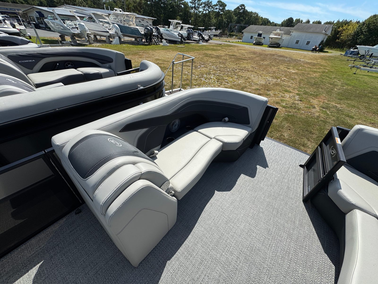 Owning the Barletta Cabrio C22CC means embracing a lifestyle of relaxation, excitement, and connection. The spacious layout encourages socializing, whether you are hosting a lively gathering or enjoying a peaceful sunset cruise. The plush, ergonomically designed seating ensures everyone stays comfortable, while the thoughtfully arranged deck allows for easy movement and conversation.The advanced engineering and quality materials used in the Cabrio C22CC translate to a smooth, quiet ride, minimizing noise and vibration so you can fully immerse yourself in the beauty of your surroundings. The combination of powerful performance and luxurious amenities makes this pontoon ideal for creating lasting memories with family and friends.
