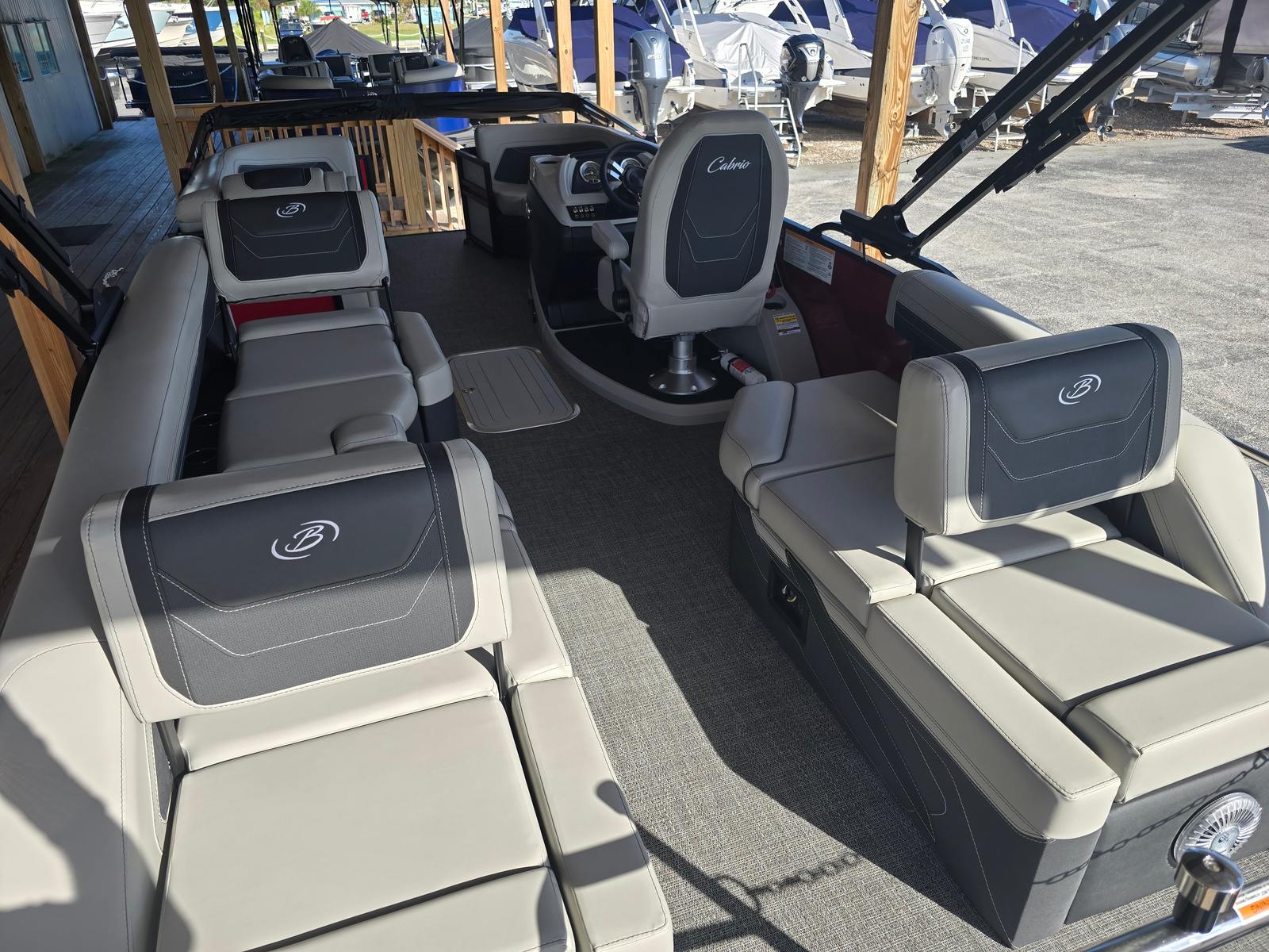 The Barletta Cabrio C22M pontoon boat excels in practicality, making ownership a breeze. The ample storage options, including the midship storage, ensure you can bring along everything you need for a day on the water without sacrificing space or comfort. Docking is simplified thanks to the boat’s maneuverable design and responsive engine, allowing for stress-free arrivals and departures at any marina or dock.Fuel efficiency is enhanced by the advanced engine and triple toon configuration, helping you maximize your time on the water while minimizing trips to the fuel dock. The durable stainless steel prop and high-quality construction mean less maintenance and more enjoyment, giving you confidence in your investment. The multifunction display provides real-time information and navigation assistance, making it easy to plan routes, monitor conditions, and stay safe during your adventures.