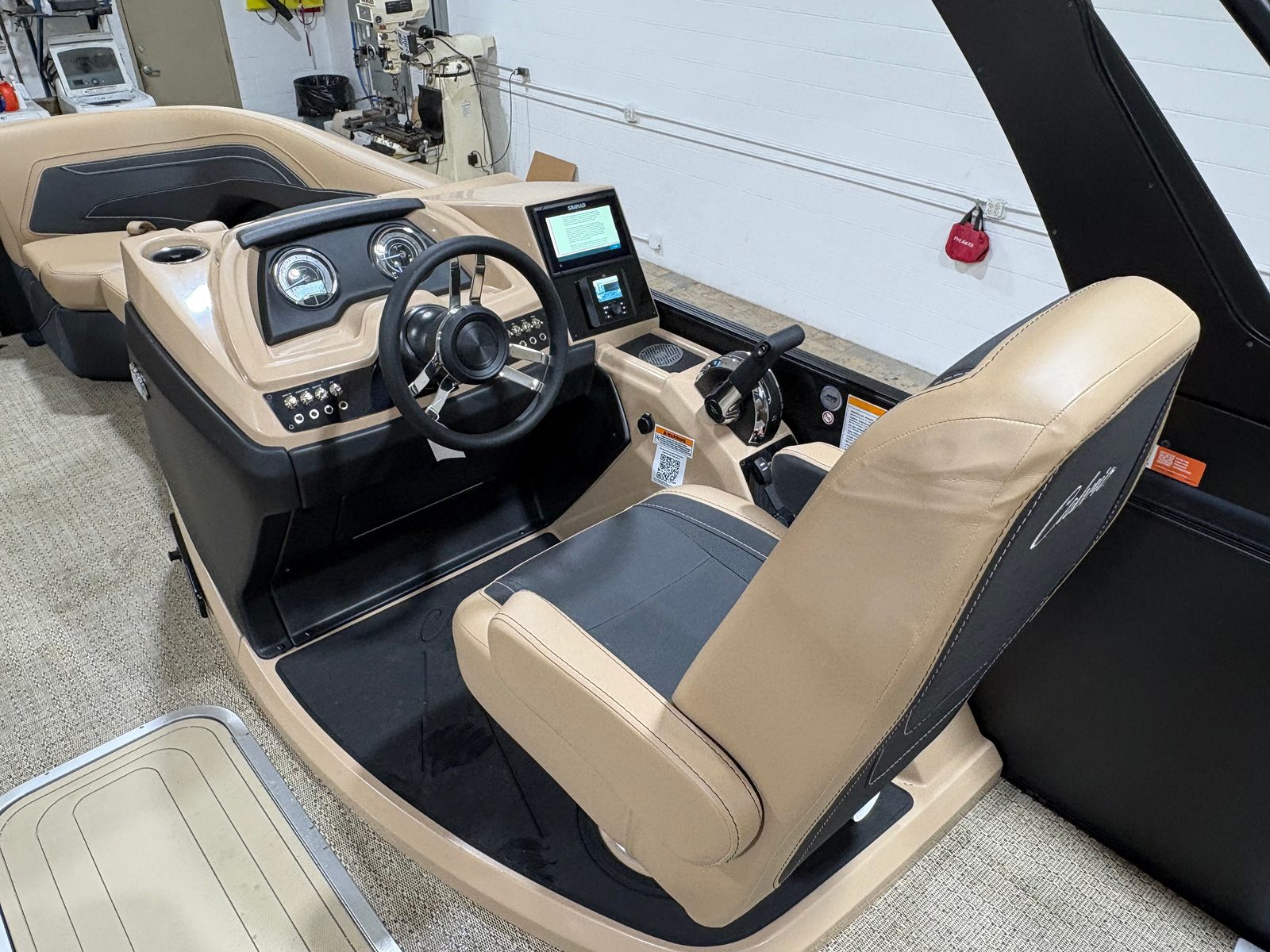 Step aboard the Barletta Cabrio C22M and experience a world of comfort and convenience. The Carmella Tan furniture with Onyx accents creates a warm and inviting atmosphere, perfect for relaxing with friends and family. The Amore Tan flooring is both stylish and practical, providing a soft, slip-resistant surface that is easy to maintain. The Triple Toon Package with midship storage adds extra stability and ample space for all your gear, ensuring that everything you need for a day on the water is right at your fingertips.The Cabrio C22M also features a Sport Bimini, installed in place of the standard bimini, offering superior shade and protection from the sun. This thoughtful addition makes it easy to stay cool and comfortable, even on the hottest summer days. Every detail of this pontoon boat has been carefully considered to enhance your boating experience, from the premium materials to the advanced rigging and engine setup.