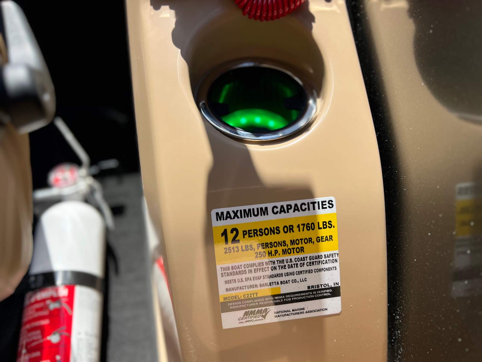 The Barletta Cabrio C22Q is loaded with premium features that set it apart in the world of pontoon boats. The striking Gray Moonstone Railskin color, complemented by the Blackout Package Cabrio, gives the exterior a sophisticated and modern appearance. Inside, the Carmella Tan furniture with Onyx accents creates a warm and inviting atmosphere, while the Amore Tan flooring adds a touch of elegance and comfort underfoot.The Triple Toon Package with midship storage provides enhanced stability, buoyancy, and extra storage space for all your gear, making it ideal for longer excursions or group outings. The onboard battery charger with two batteries ensures you have reliable power for all your electronic needs, while the stainless steel flag pole with an American flag adds a patriotic flair to your boating experience. Every detail, from the rigged engine with a stainless steel prop to the thoughtfully designed seating and storage solutions, is crafted to enhance your time on the water.