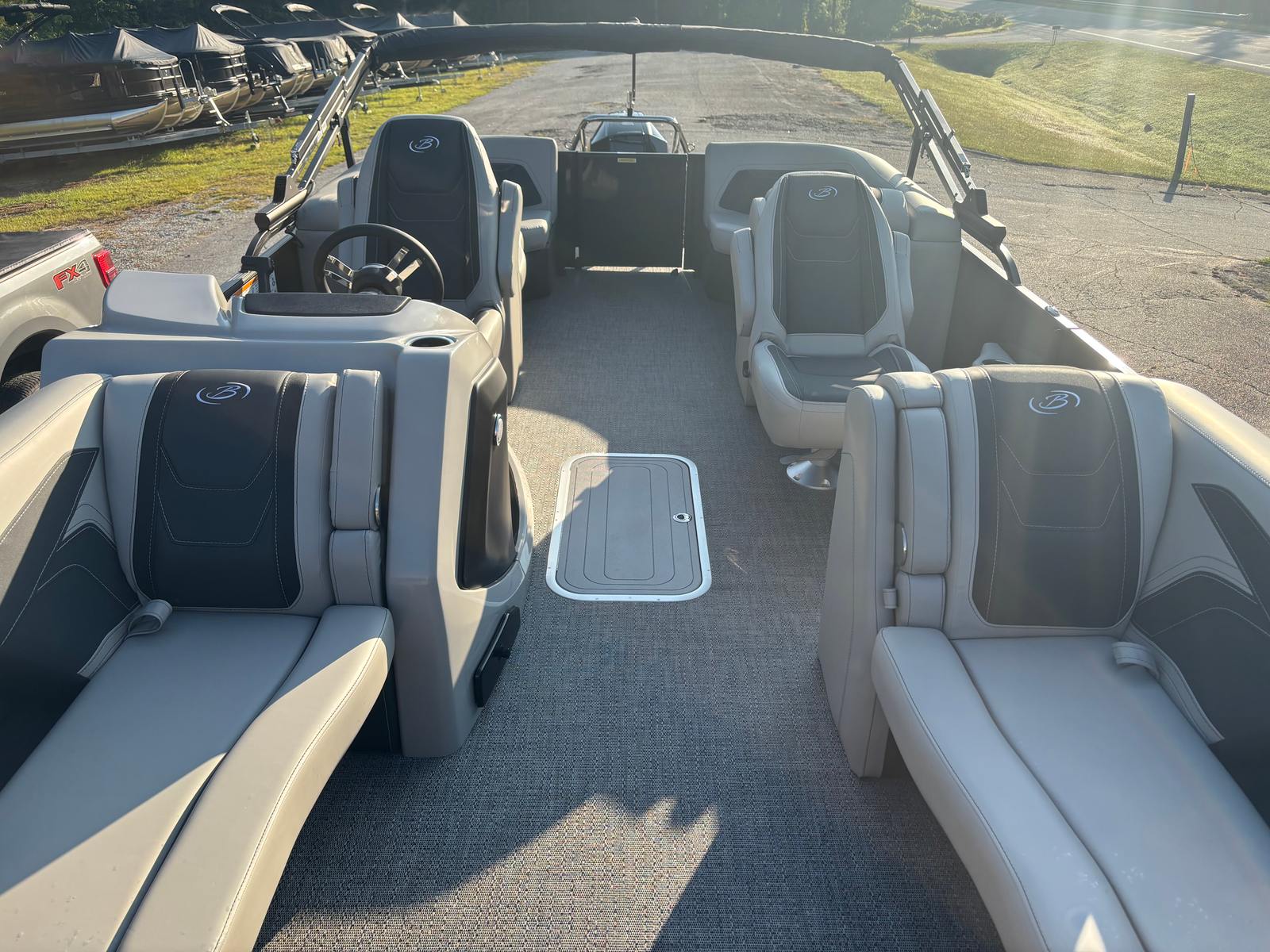 The Barletta Cabrio C22QC is as practical as it is luxurious. The midship storage compartment, part of the Triple Toon Package, offers ample space for life jackets, water sports equipment, and other essentials, making it easy to keep your pontoon organized and ready for adventure. The efficient Mercury 200L FourStroke engine is designed for reliability and fuel efficiency, allowing you to spend more time on the water and less time at the fuel dock.Docking and maneuvering are made simple with the power assist steering, giving you precise control in tight spaces and busy marinas. The durable stainless steel prop and high-quality construction ensure that your pontoon is built to withstand the rigors of regular use, providing peace of mind and long-lasting enjoyment.