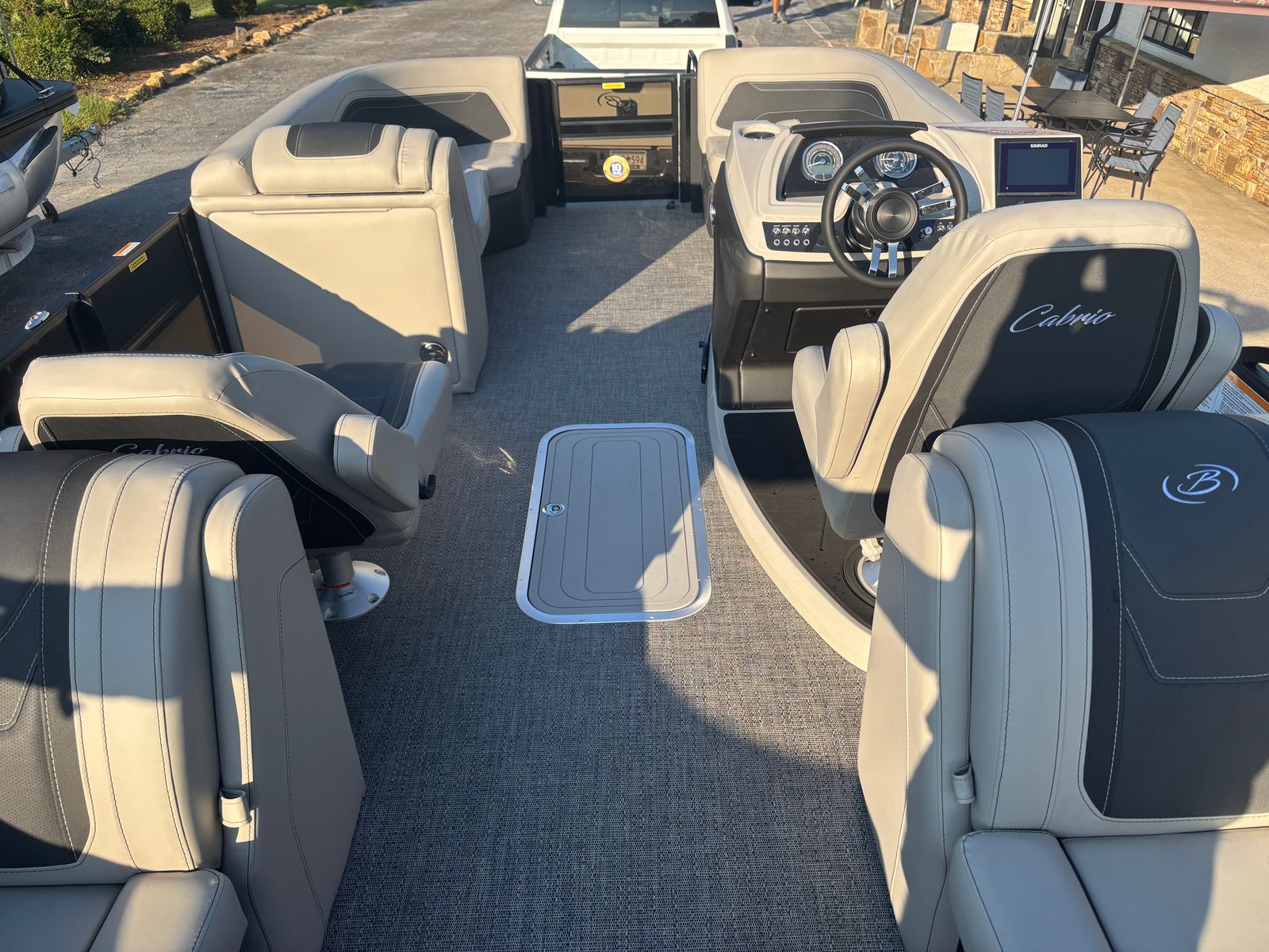 In summary, the 2026 Barletta Cabrio C22QC pontoon boat for sale is a standout choice for anyone seeking a blend of performance, comfort, and style. With its powerful Mercury 200L FourStroke engine, advanced navigation technology, and luxurious interior finishes, this Barletta boat for sale is designed to deliver exceptional experiences on the water. The Blackout Package Cabrio, stainless steel prop, Marquesan Gray furniture, Amore Gray flooring, Triple Toon Package with midship storage, interior RGB lighting, and Simrad chartplotter all contribute to a vessel that is as functional as it is beautiful.If you are ready to elevate your boating lifestyle and create unforgettable memories with family and friends, the Barletta Cabrio C22QC is the perfect choice. Discover the joy of owning a top-tier pontoon and experience the ultimate in leisure, performance, and versatility. Contact your local dealer today to learn more about this incredible pontoon boat for sale and start your next adventure on the water.