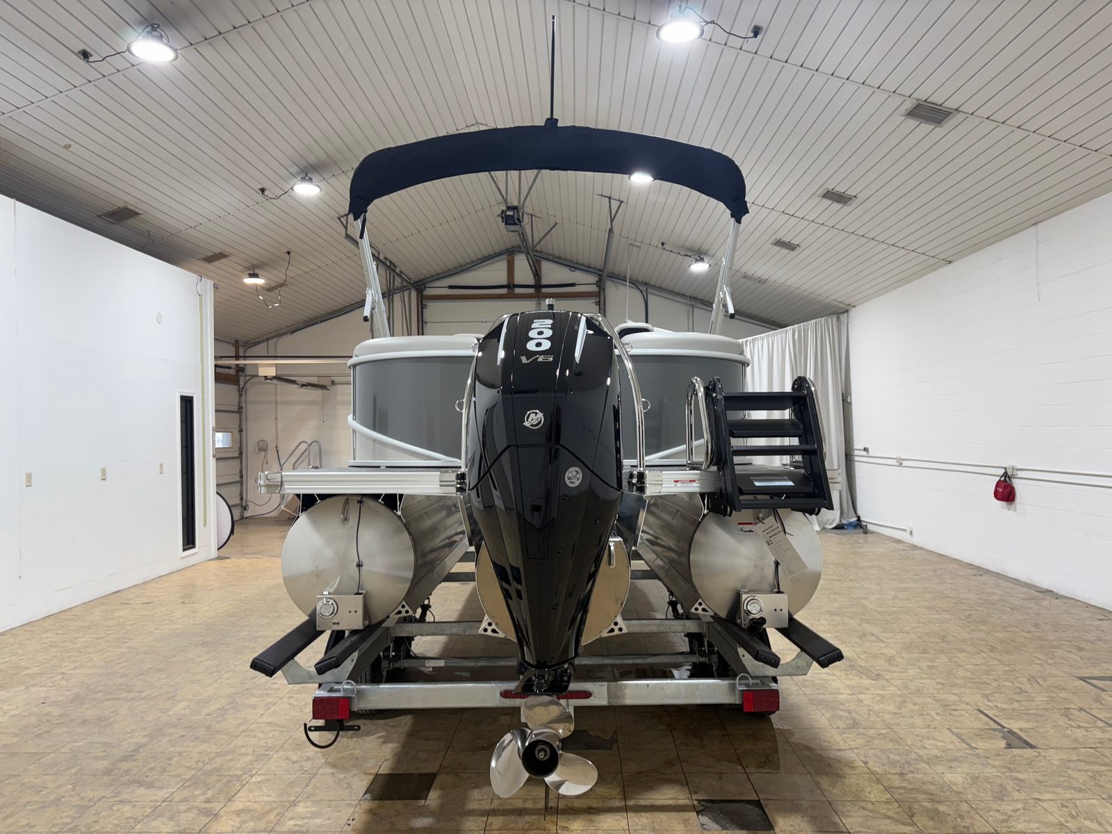 The Barletta Cabrio C22QC is a new pontoon boat that measures an impressive 23.17 feet in length, offering ample space for relaxation, entertainment, and exploration. Crafted with Barletta’s renowned attention to detail, this model combines modern aesthetics with practical design, making it a top contender for anyone seeking a Barletta boat for sale. Its sleek profile, highlighted by the Gray Moonstone railskin color and Champagne accent, ensures you’ll turn heads at every marina and lakefront.